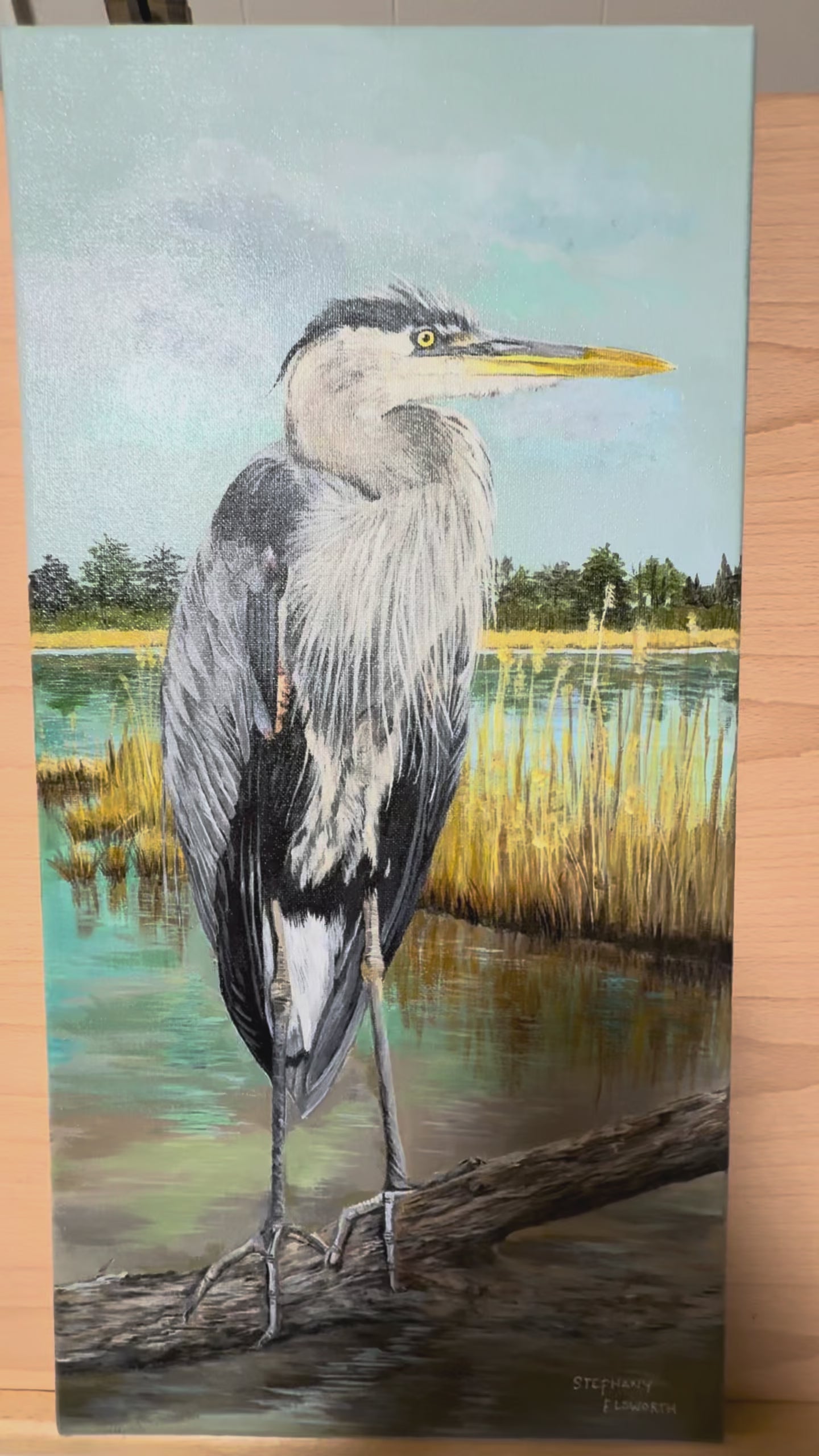 10 x 20 Inch Heron Original Acrylic Painting