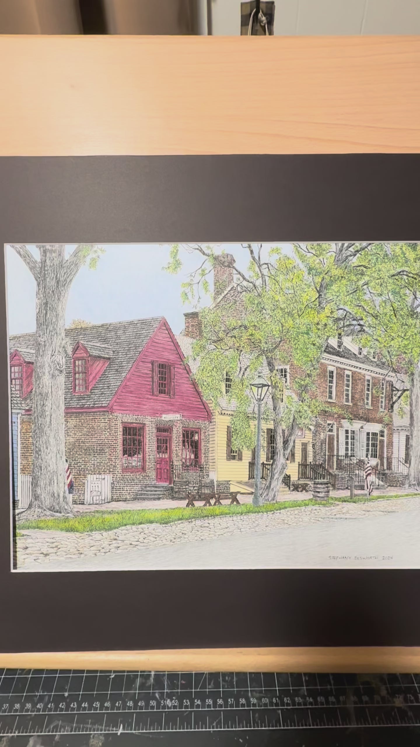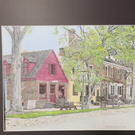 14 x 11 inch Colonial Williamsburg's Millinery Row Original Pen and Ink/Colored Pencil Illustration