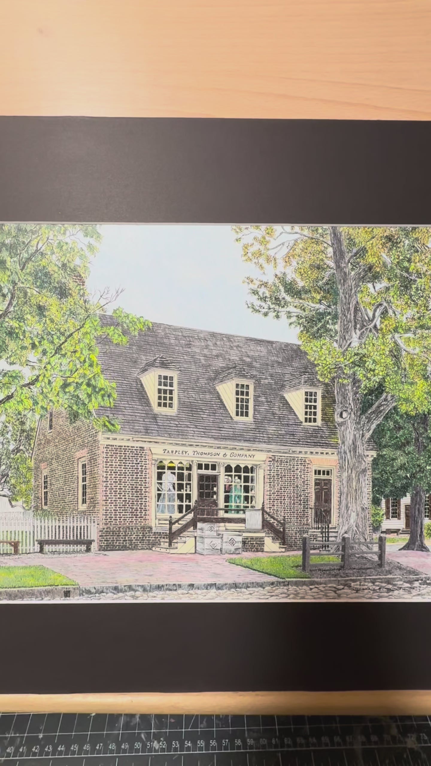 14 x 11 inch Colonial Williamsburg's Tarpley, Thompson & Co. Shop in 20 x 16 inch Black Mat Original Art