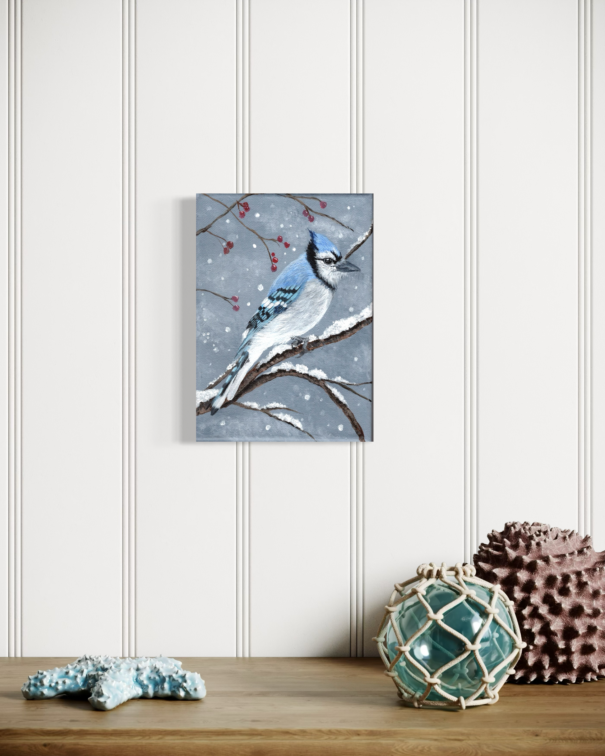 Capture the vibrant beauty of winter with this stunning 5 x 7 inch original acrylic painting featuring a bluejay perched among snow-dusted berries. Each brushstroke brings this beloved winter bird to life with rich detail and dynamic color. The artist has painted all four edges, eliminating the need for framing—display it as-is for an instant gallery-quality accent piece. Perfect for nature lovers and art collectors seeking authentic, handcrafted work. Includes free shipping throughout the continental United States. Note: The watermark is for viewing purposes only and is not part of what you will receive.