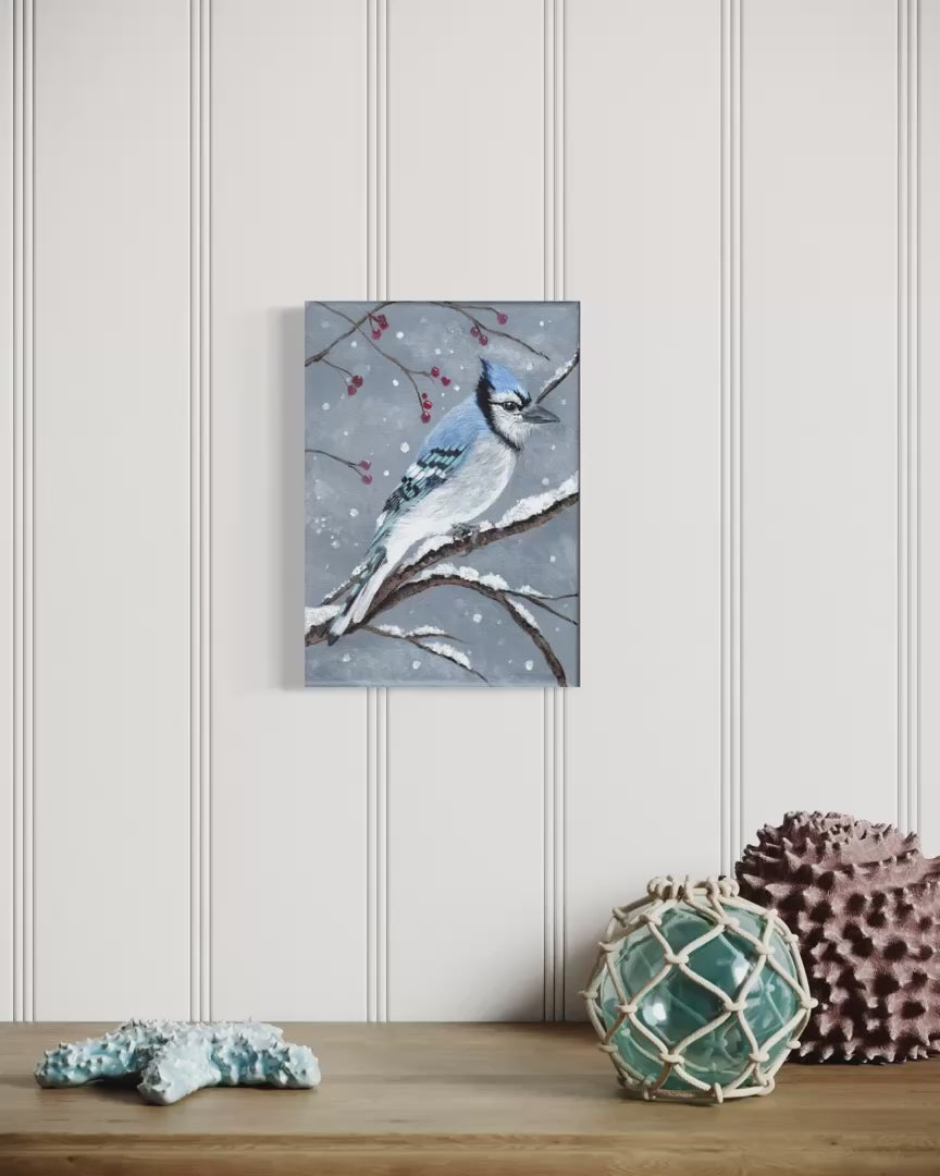 5 x 7 inch Bluejay in Snow Original Acrylic Painting