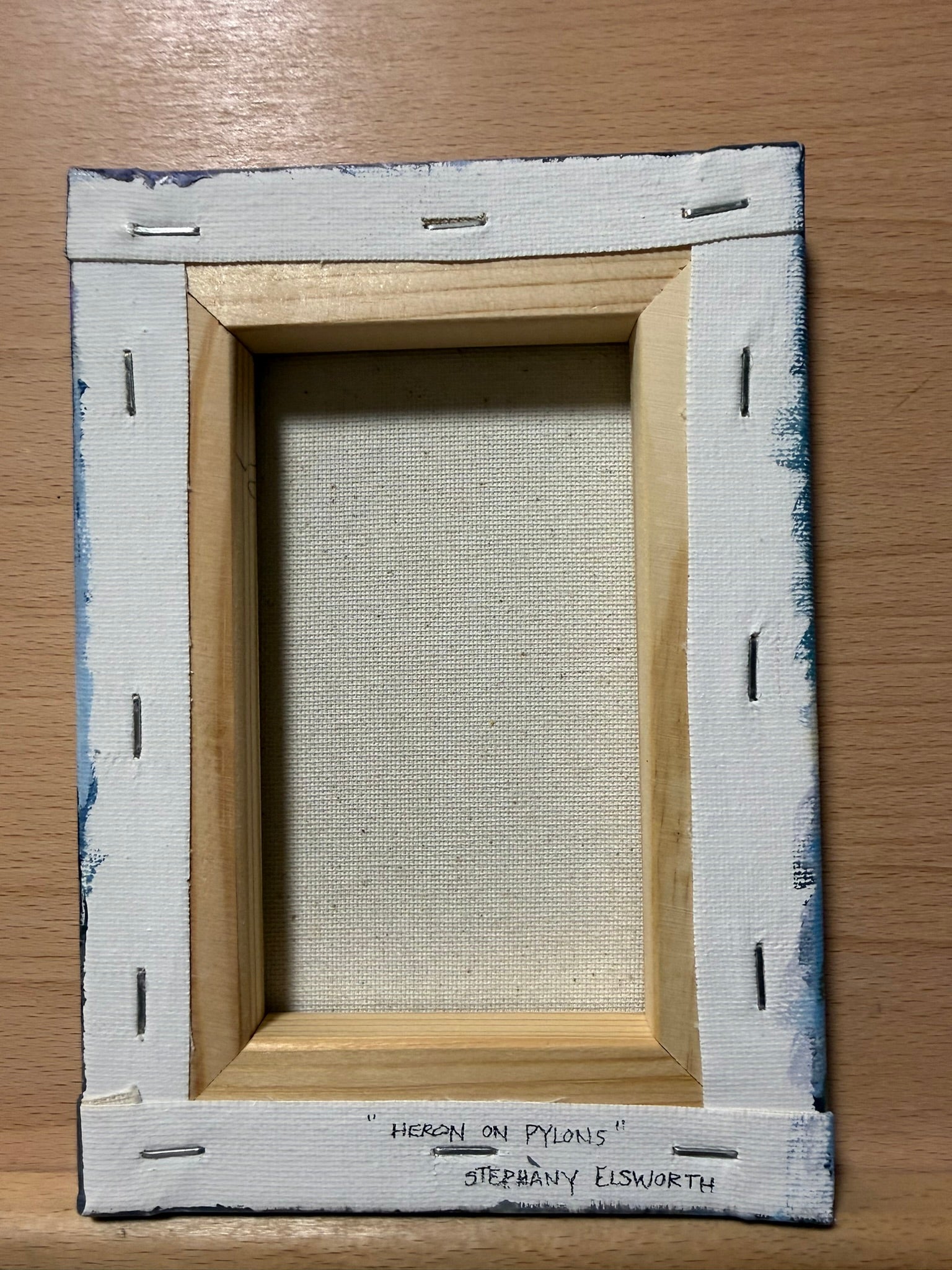 5 x 7 Inch Gray Heron on Pylons Original Acrylic Painting