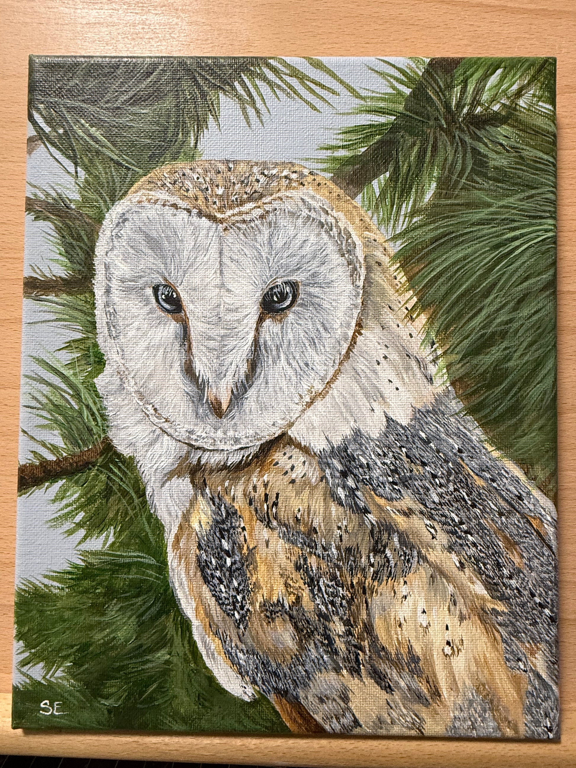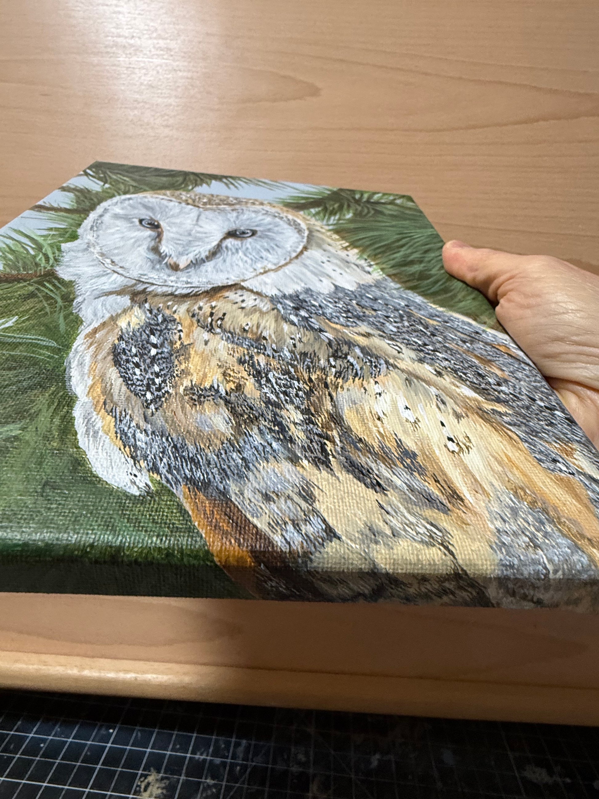 Indulge in the mesmerizing beauty of nature with our 8x10 Barn Owl Original Painting. Captivating pine needles and stunning wildlife details make this collectible a perfect gifting choice for nature enthusiasts. Hand-painted with high-quality acrylic paint, it also comes with free shipping within the continental US or local pickup.
