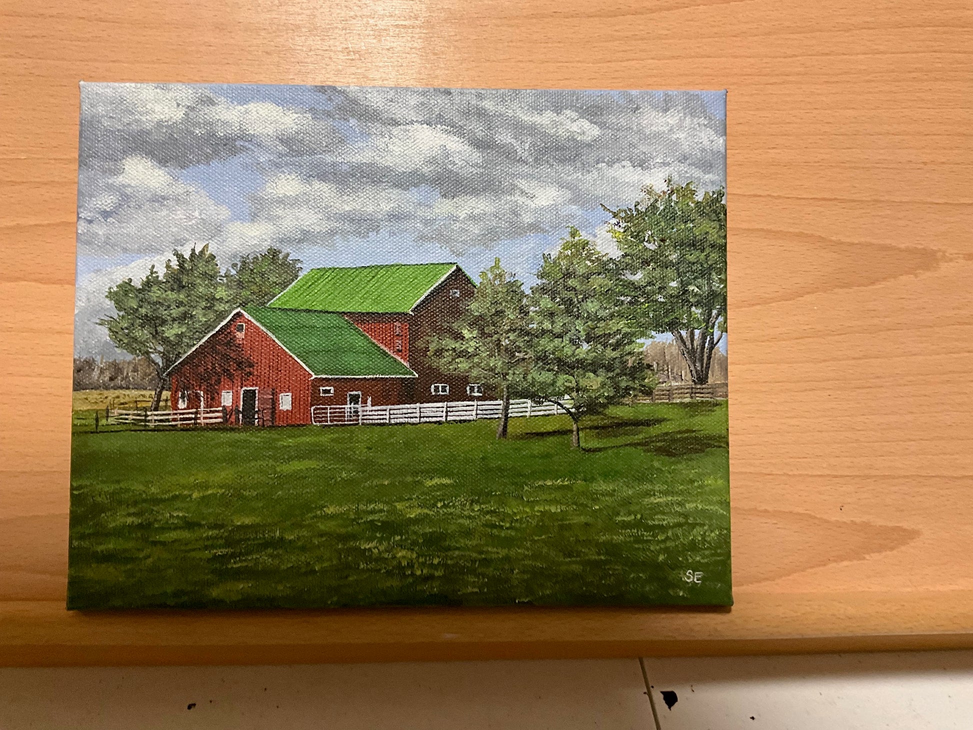 8 x 10 inch Little Red Barn Original Acrylic Painting