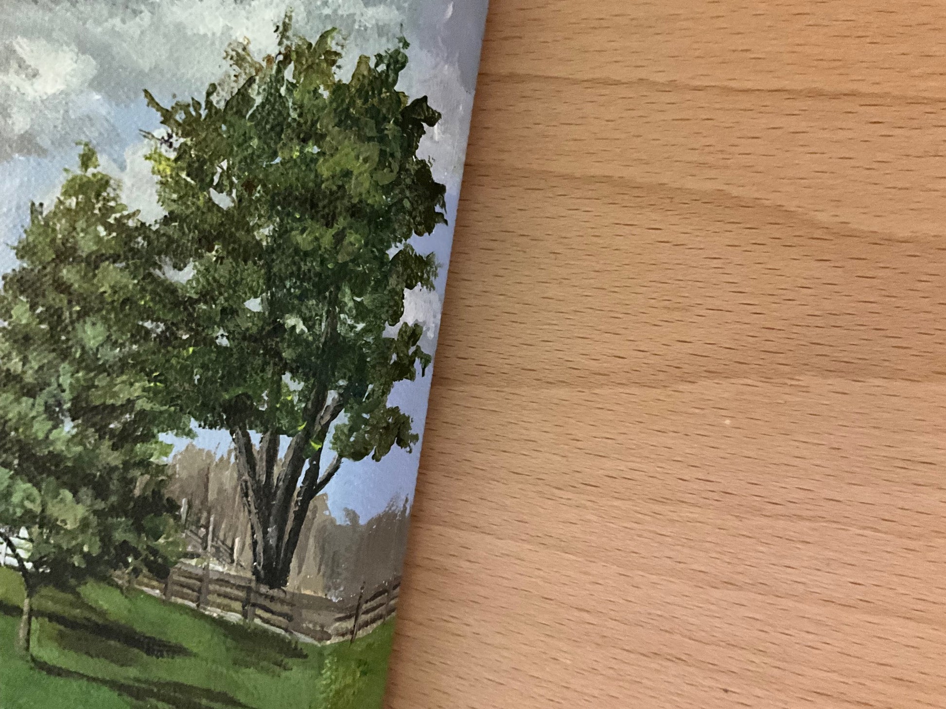 This charming 8 x 10 inch original acrylic painting captures a serene landscape featuring a little red barn with a distinctive green roof. Its gentle, picturesque scene invites relaxation and adds a warm, rustic touch to any space. Painted on all four sides, framing is optional. Perfect as a collectible or thoughtful gift, this artwork brings peaceful countryside beauty into your home. Enjoy free shipping within the continental United States on this unique piece.
