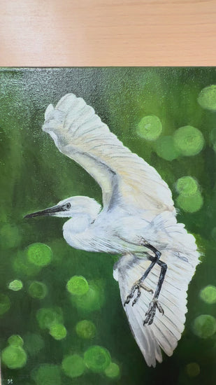 9 x 12 inch Egret on Green Original Acrylic Painting