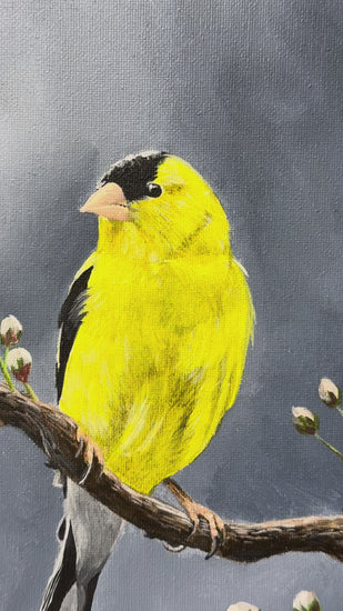 This 9 x 12 original acrylic painting showcases a lively goldfinch. The canvas is meticulously painted on all four sides so framing is optional. Delivered unmatted and unframed, it allows you to personalize your display. The watermark is only for viewing and will not appear on the finished piece, making this artwork a stunning and versatile addition to your collection. Free shipping in continental United States only.