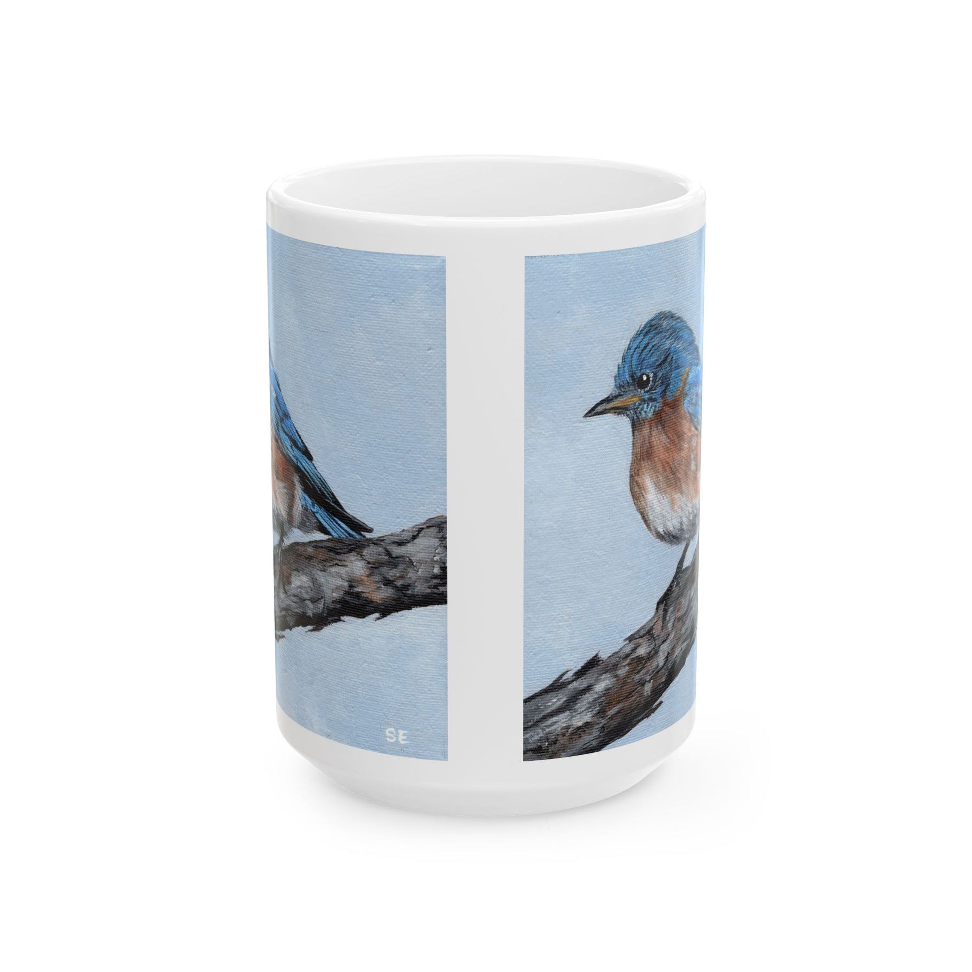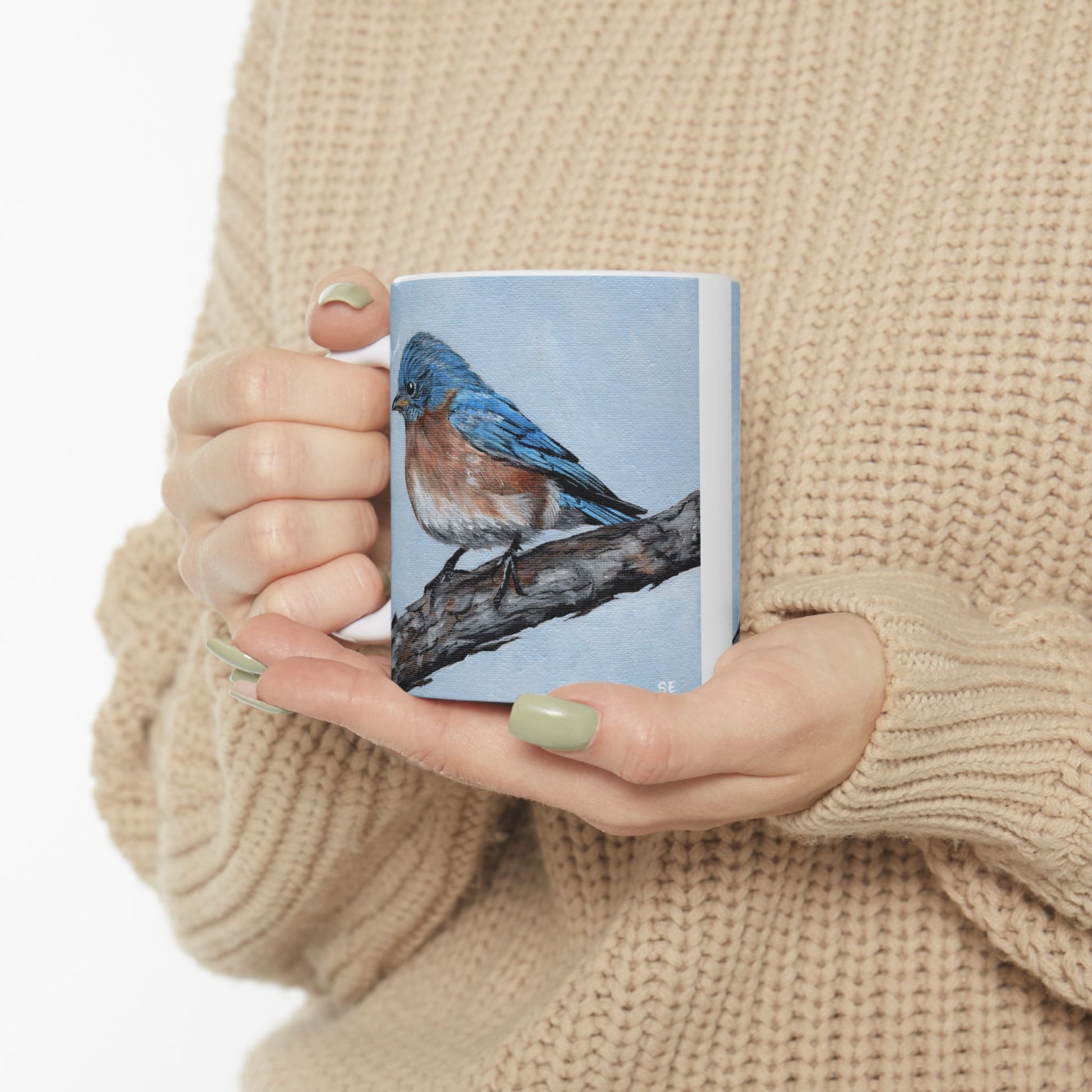 Bluebird Ceramic Mug — Hand-Painted Songbird Coffee Cup (11oz, 15oz)