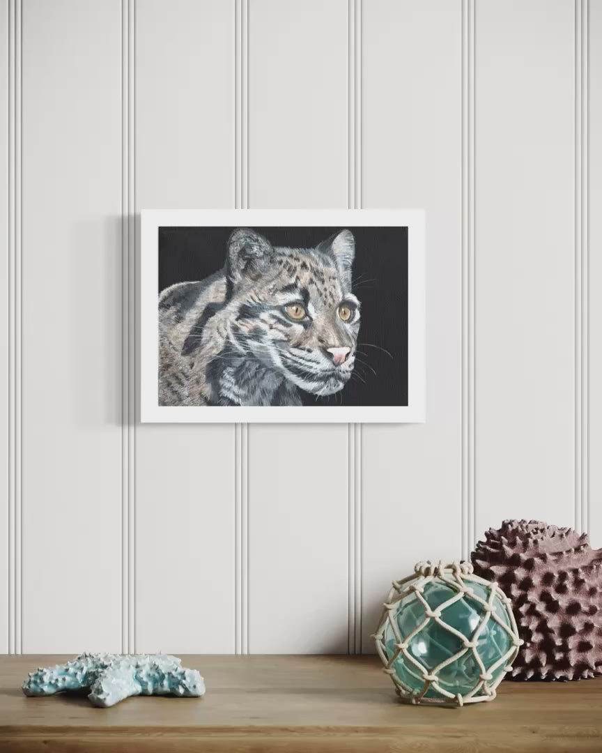 Discover the mesmerizing gaze of a clouded leopard in this stunning 8 x 6 inch giclee fine art print. Rendered from an original painting by Stephany Elsworth, this wildlife masterpiece captures the raw beauty and mysterious allure of this elusive big cat in its natural jungle habitat. Each print is meticulously produced using premium giclee printing techniques, ensuring vibrant colors and exceptional detail that honor the artist's vision. Perfect for nature enthusiasts and art collectors alike, this piece brings the untamed elegance of the wilderness into your home. Complimentary shipping applies to continental United States orders. Note: The watermark visible in preview images is not included in your final print. Reference photo provided by Jackie Macadam.
