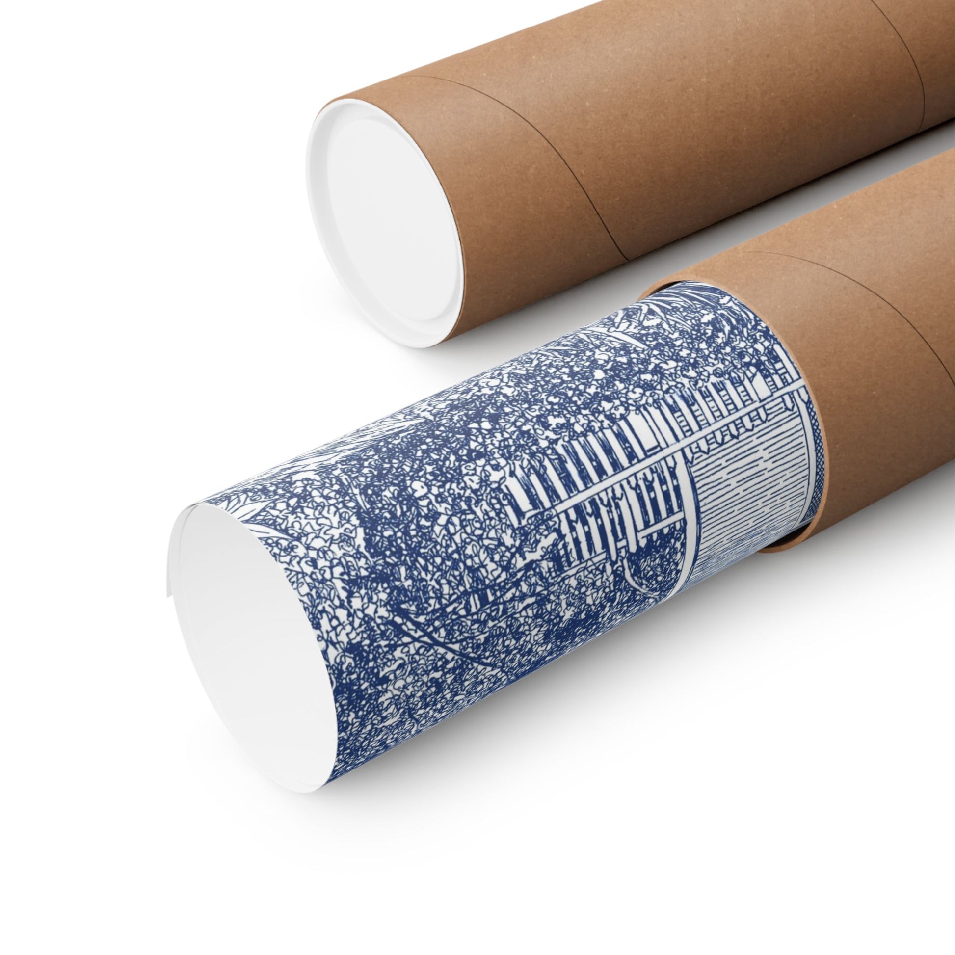 A matte horizontal poster that brings a quiet, blue-toned countryside scene into your home. Printed using archival museum-grade paper and giclée inks, the image keeps its fine detail and rich, light-absorbing matte surface — like a soft morning memory captured on paper. Hang it over a reading nook, above a mantel, or in a hallway to add calm, nostalgic energy. The delicate linework and tonal depth invite slow looking; it fits rooms and people that favor thoughtful, lived-in beauty and subtle vintage vibes.