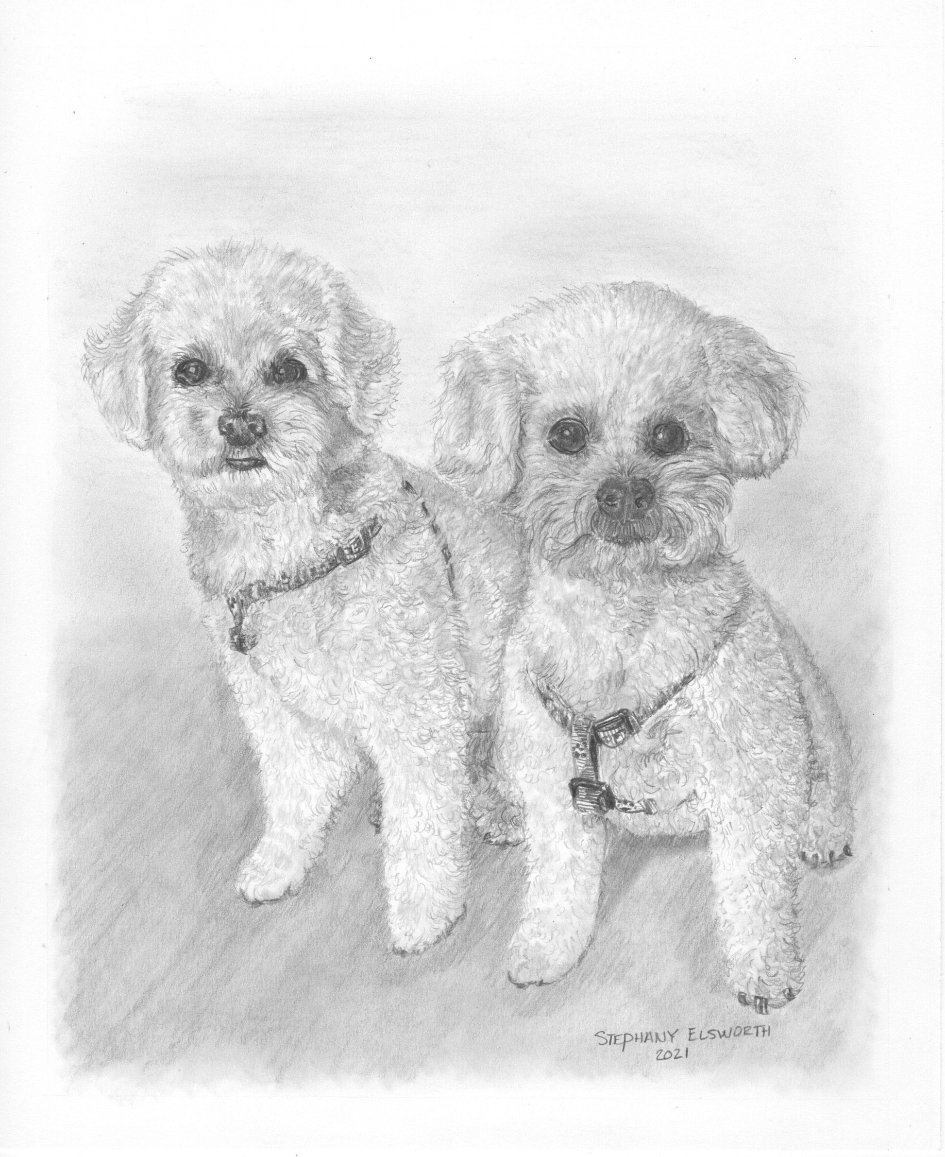Pet portraits are a great way to celebrate the addition of a new family member or commemorate the lives of those who have passed over the rainbow bridge. If you'd like a custom graphite pencil portrait of your pet, please send a high-resolution photo to stefs13@gmail.com when you make your purchase. It usually takes about 1-2 weeks to complete a pet portrait depending on the size and complexity. The portrait ships to you in a mailing envelope between two pieces of cardboard, unmatted and unframed.