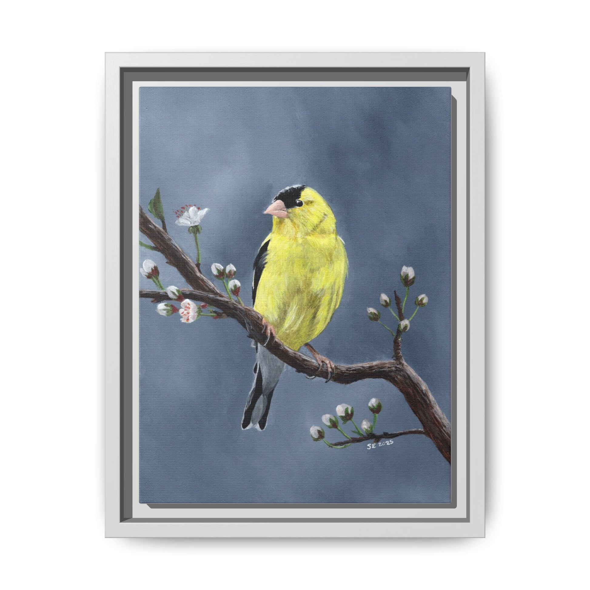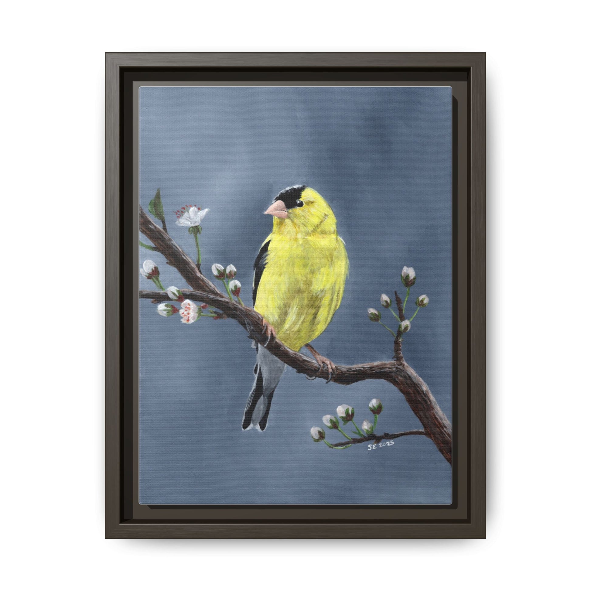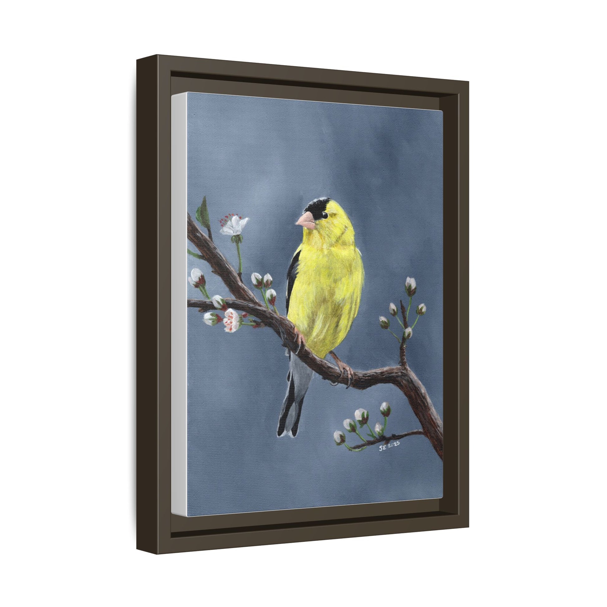 Framed Canvas Print — Yellow Finch on Branch Wall Art