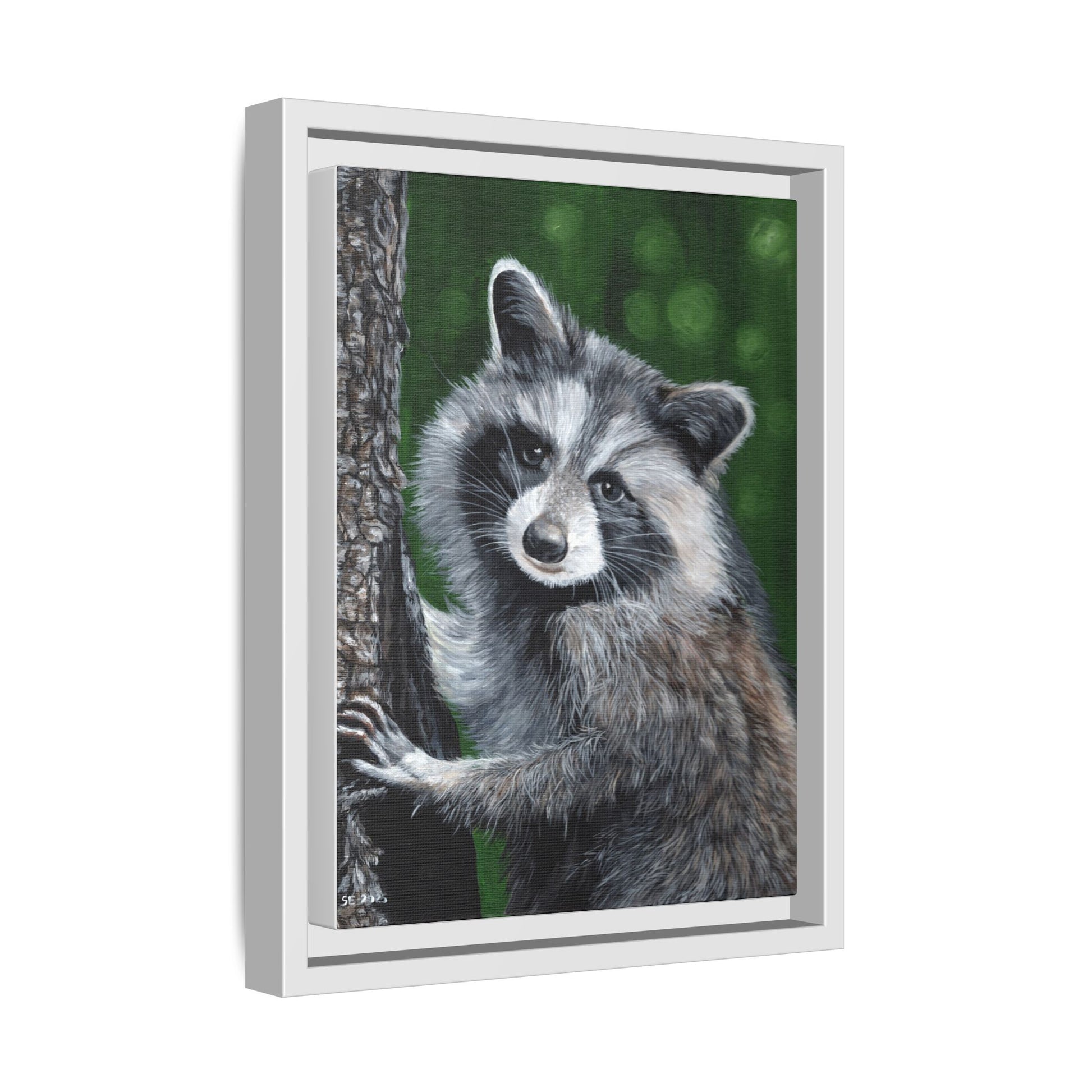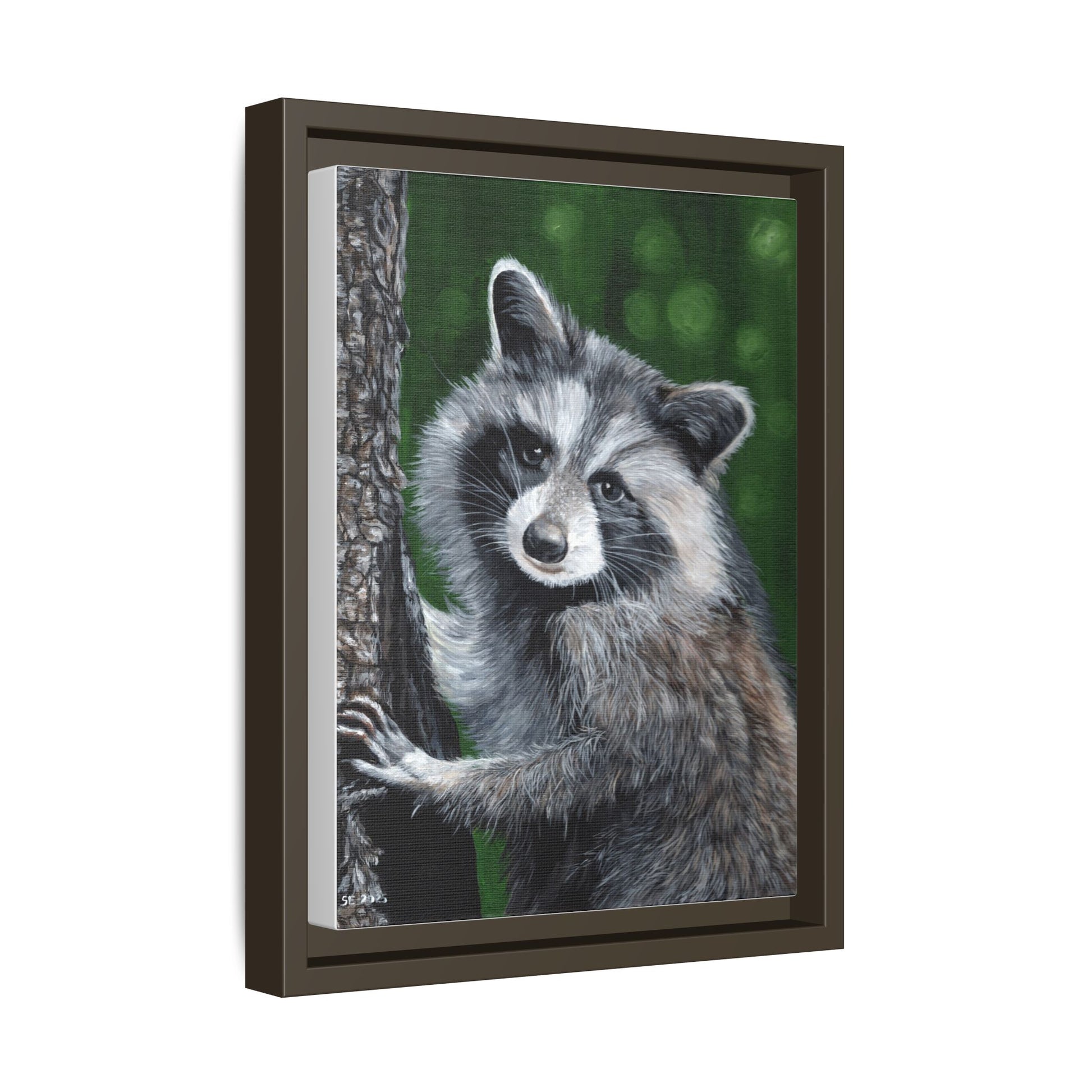 Framed Raccoon Canvas Art Print – Woodland Wildlife Wall Decor