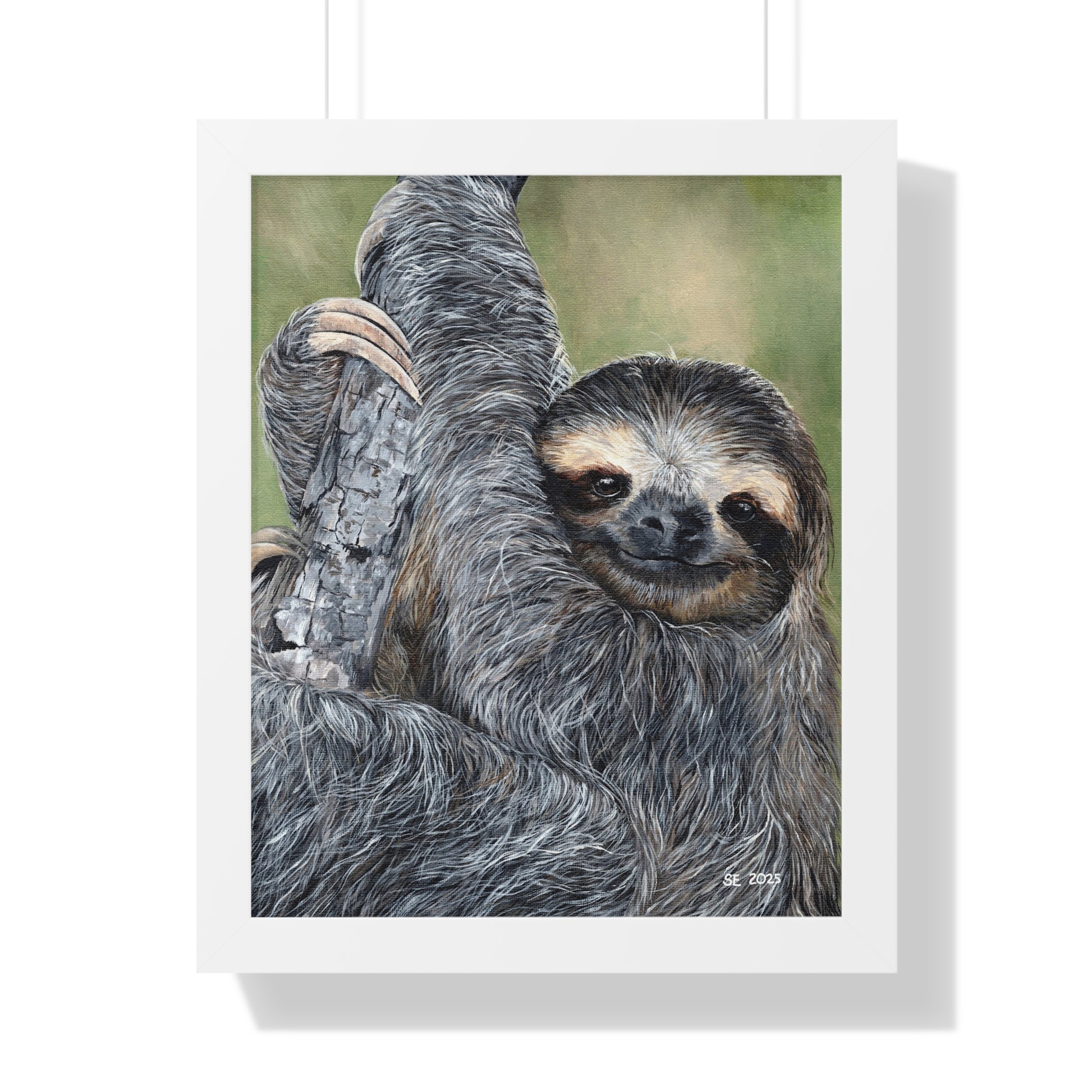 Framed Sloth Art Print — Cute Hanging Sloth Poster for Nursery & Living Room