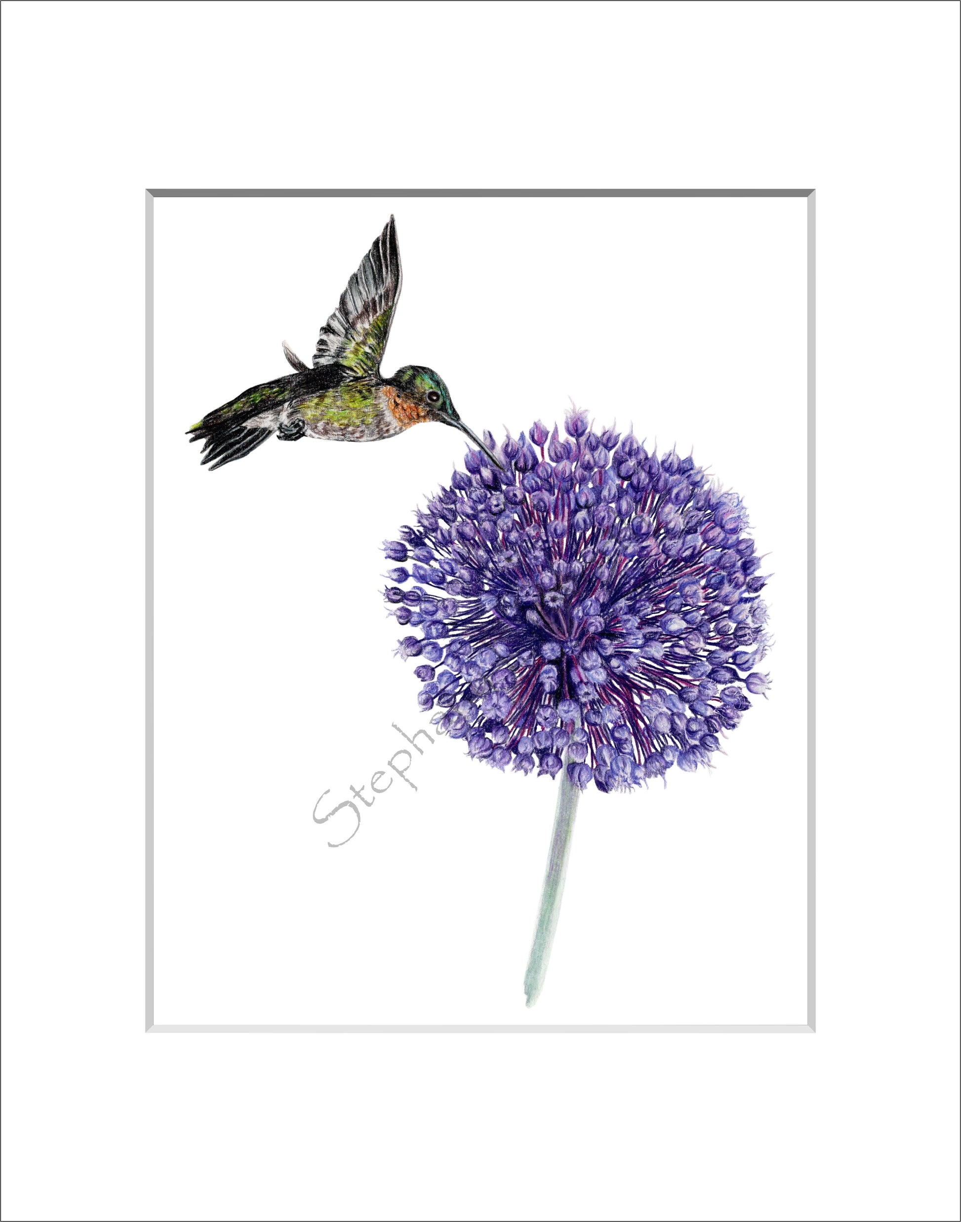 Hummingbird and Yorktown Onion 8 x 10 Fine Art Giclee Print in 11 x 14 mat