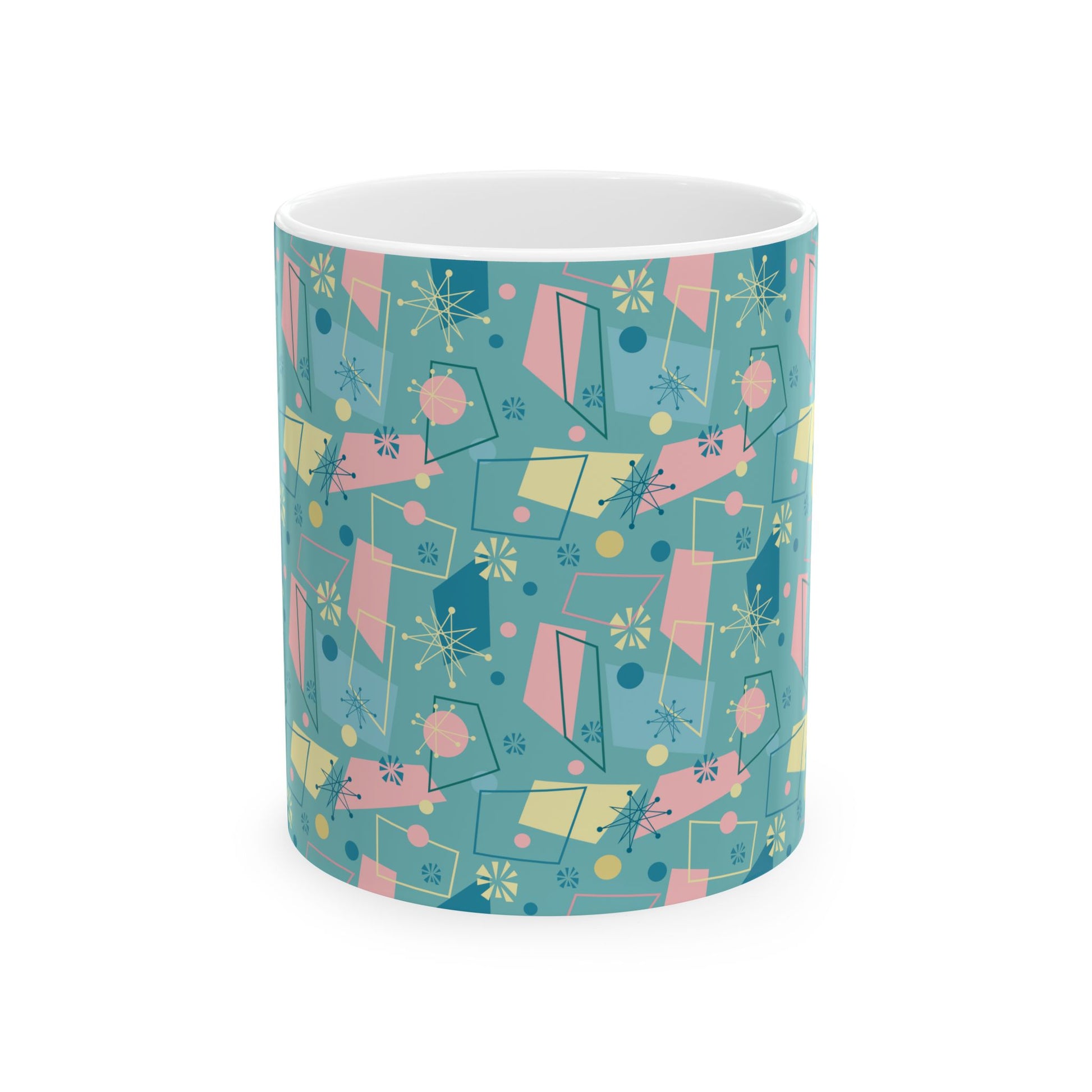 Mid-Century Modern Pattern Ceramic Mug — Retro Teal Atomic Design (11oz/15oz)