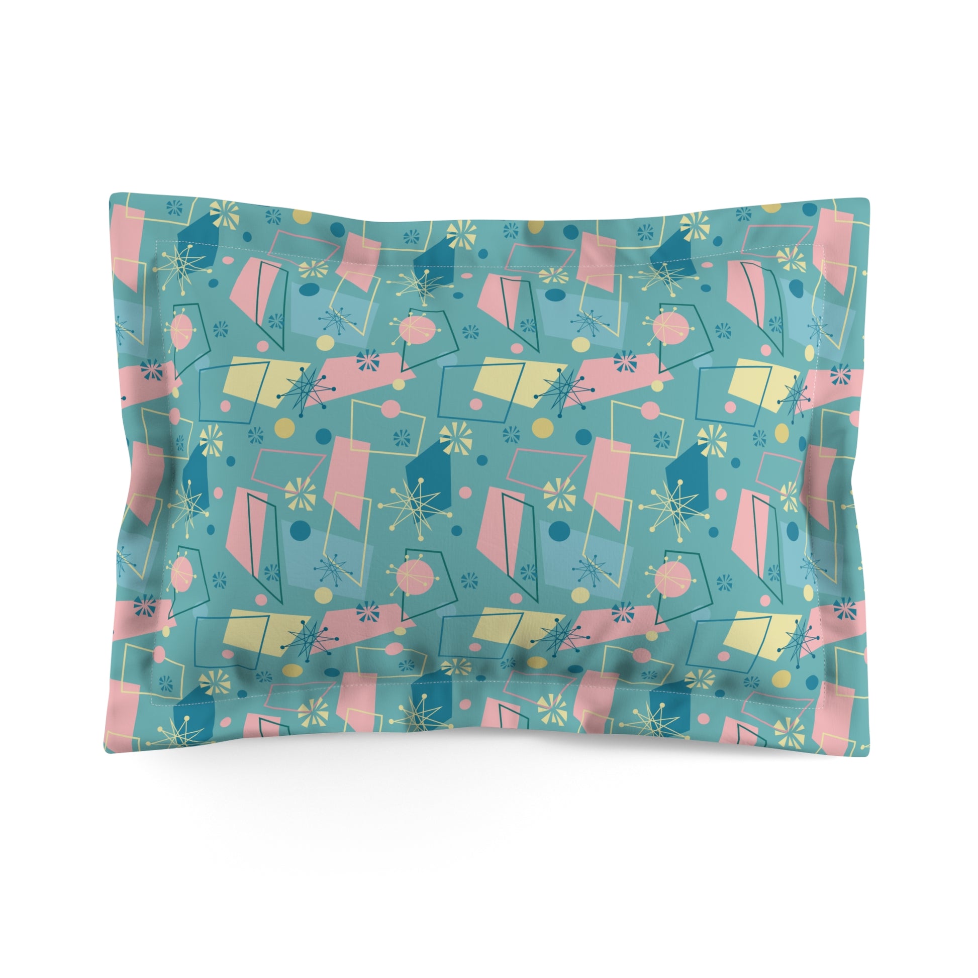 Mid-Century Modern Retro Geometric Pillow Sham — Teal Pink Atomic Pattern