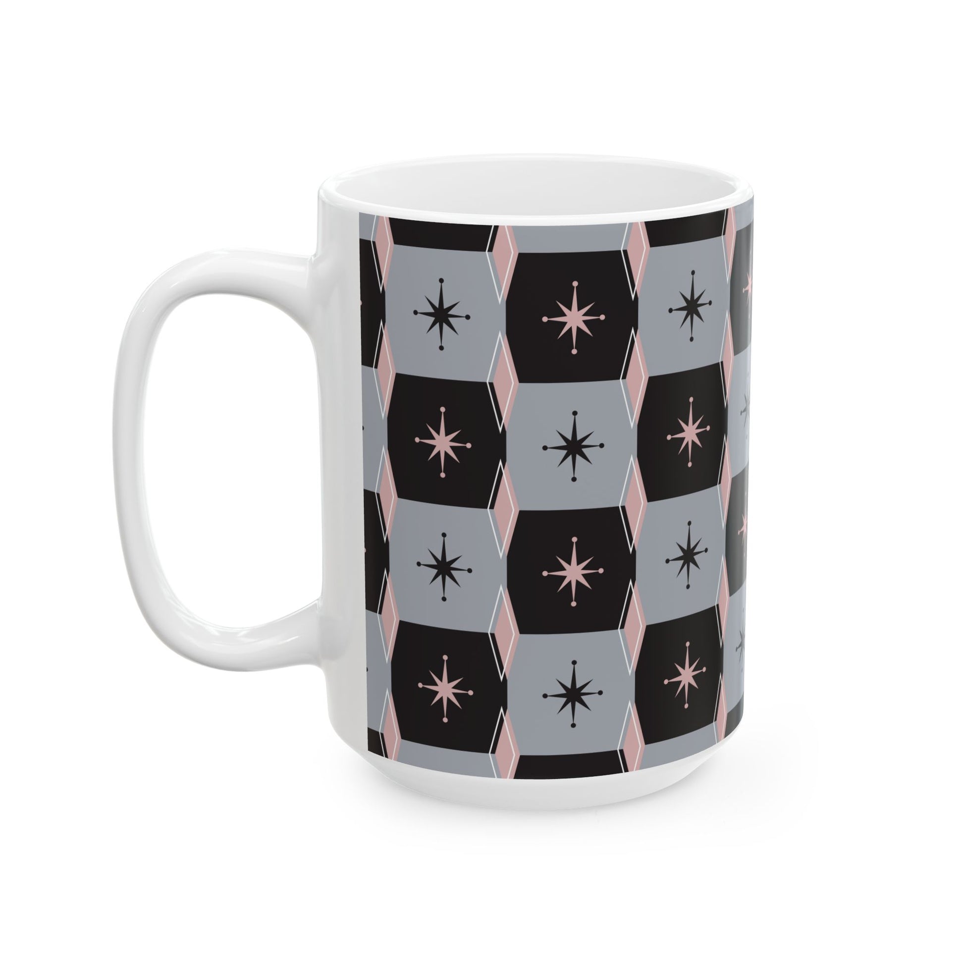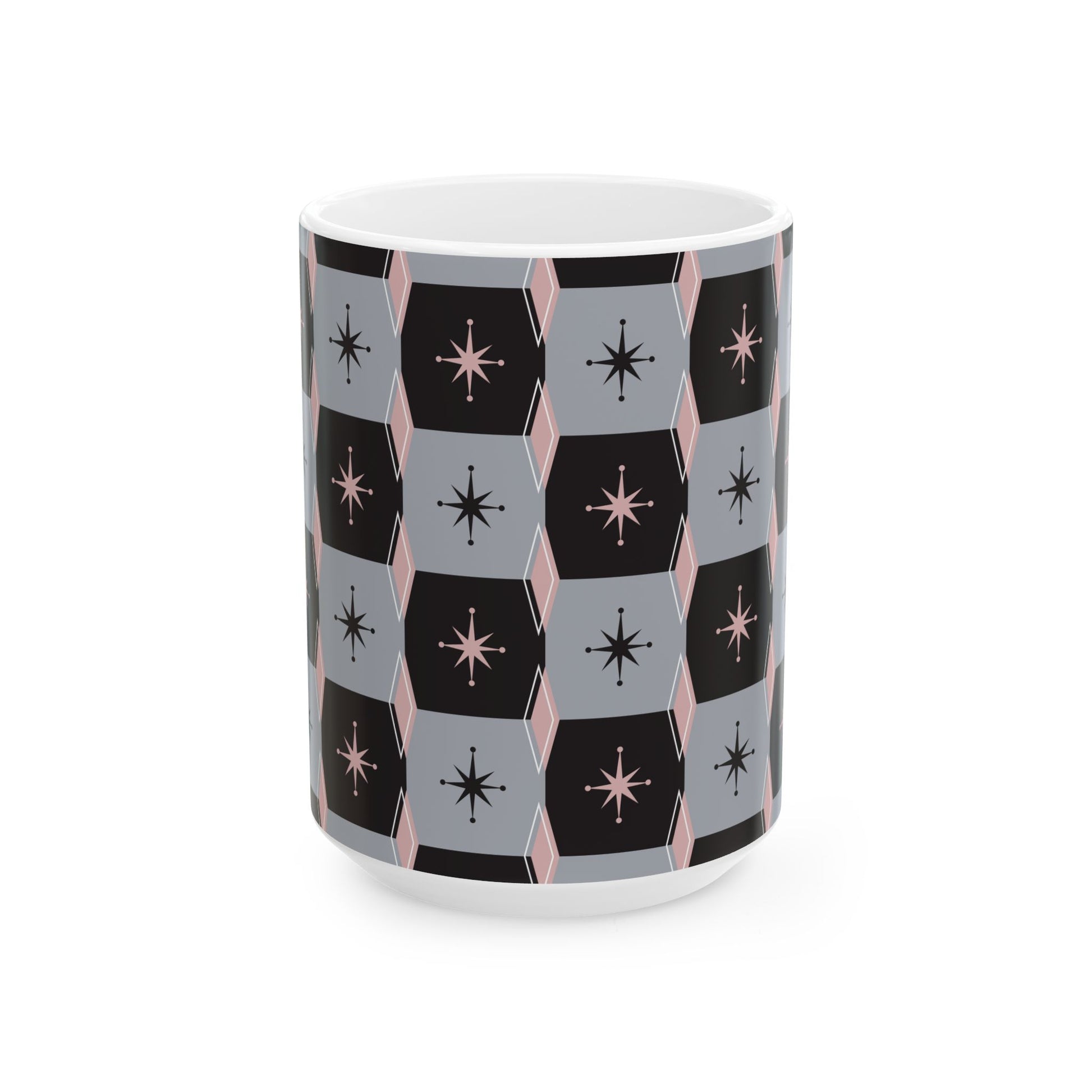 Mid-Century Starburst Ceramic Mug — Retro Geometric 11oz & 15oz
