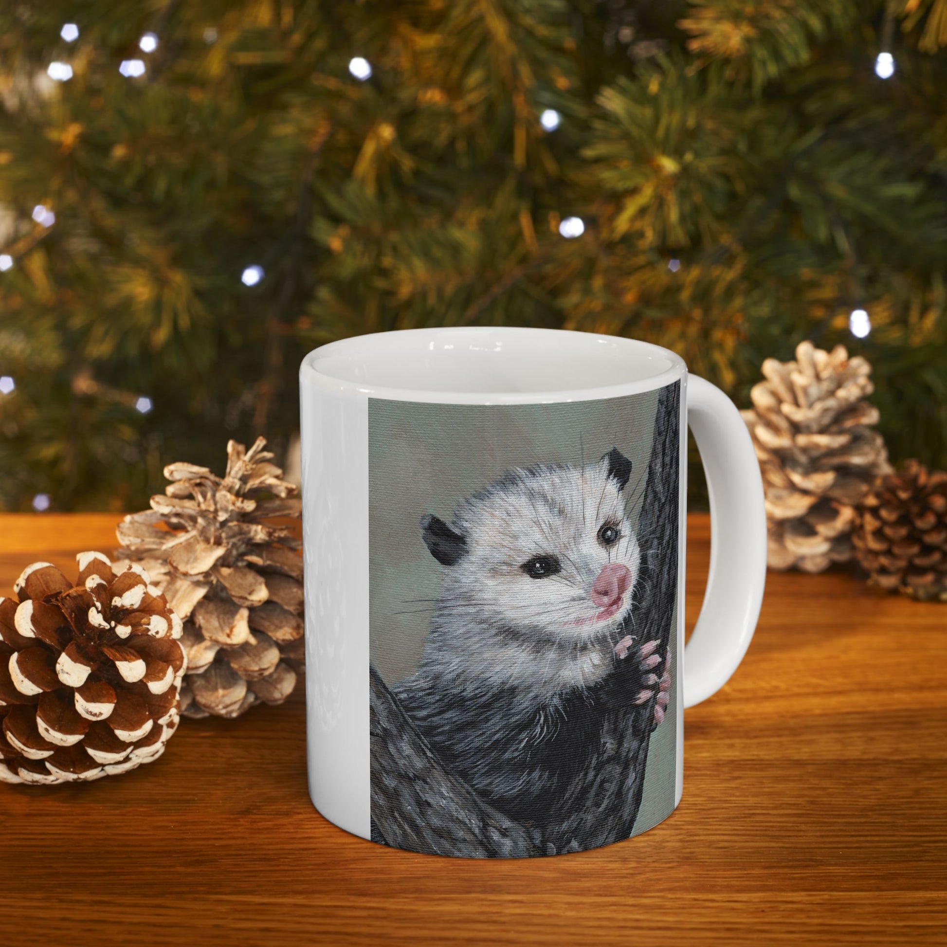 Opossum Art Ceramic Mug — Cute Wildlife Tree-Climbing Possum Coffee Cup (11oz/15oz)