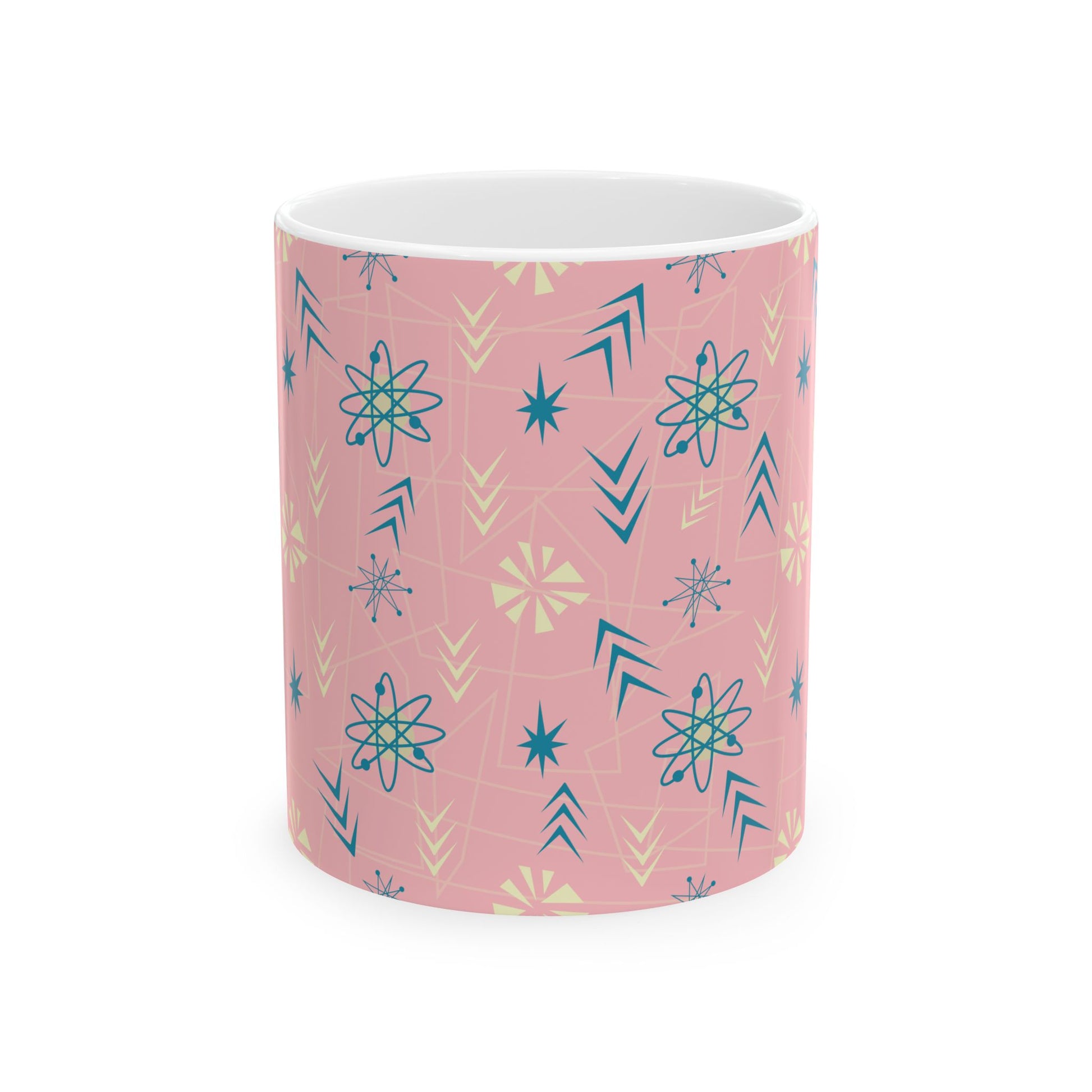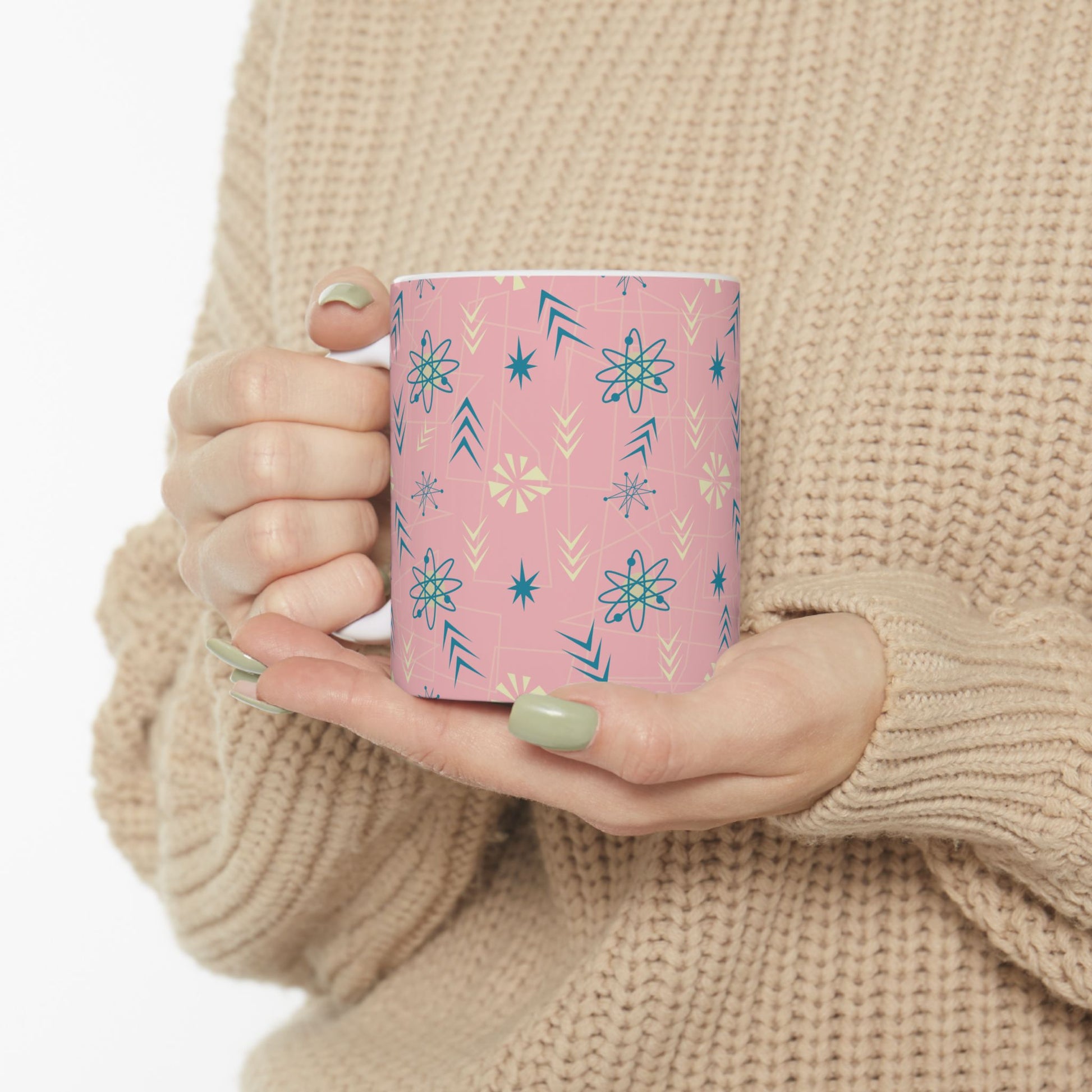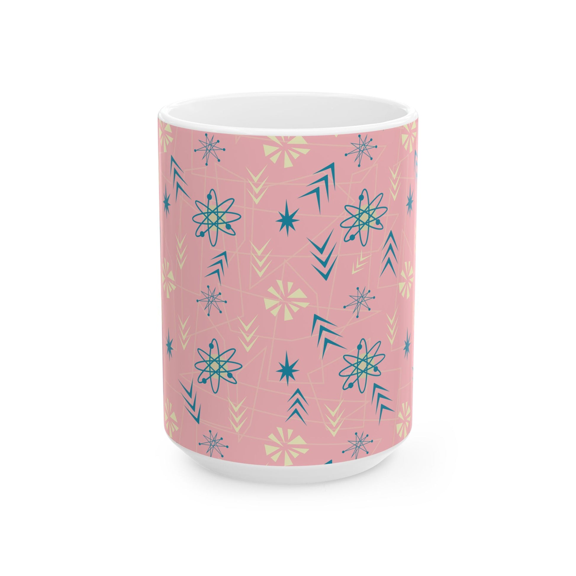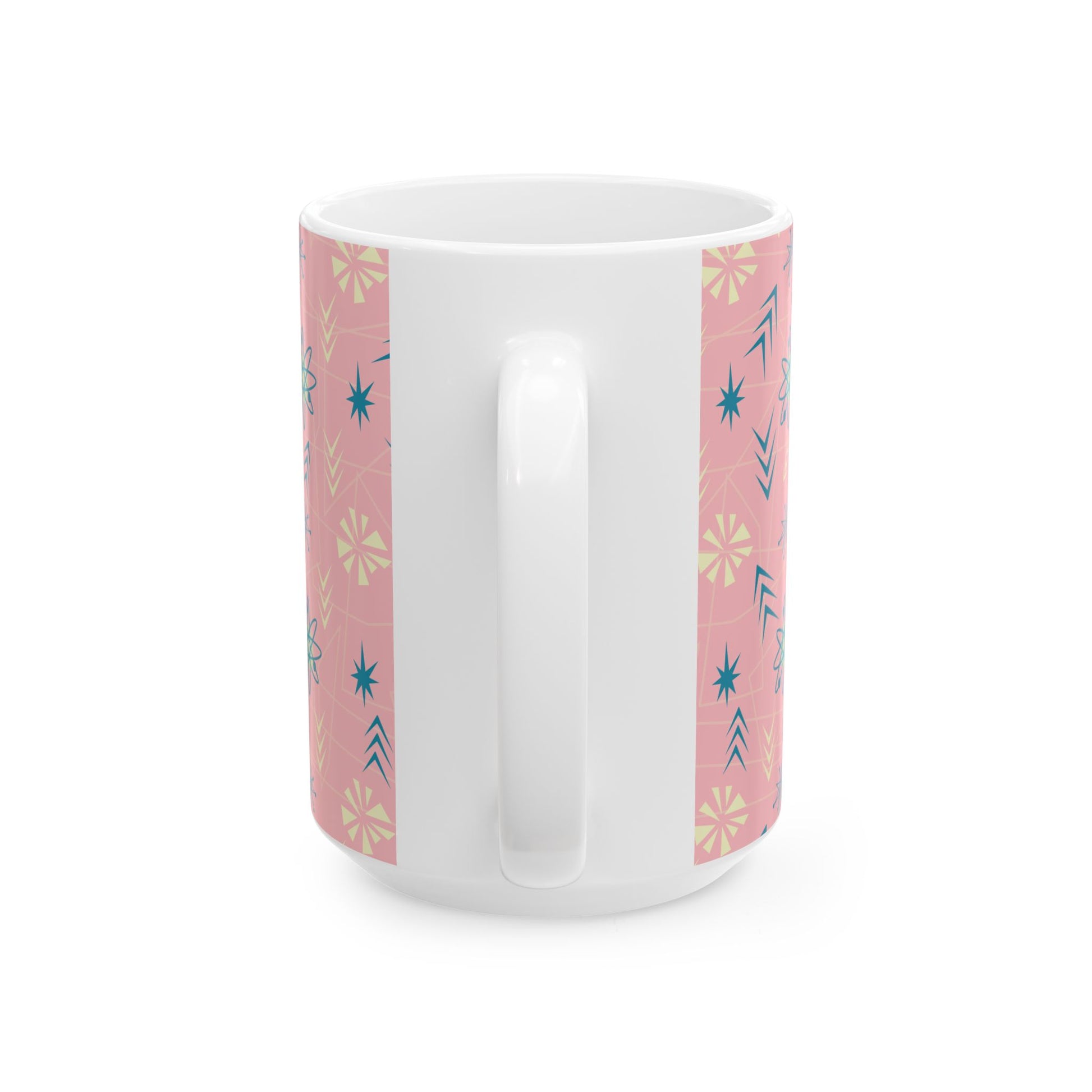 Pink Retro Starburst Ceramic Mug – Mid-Century Modern Coffee Cup (11oz/15oz)