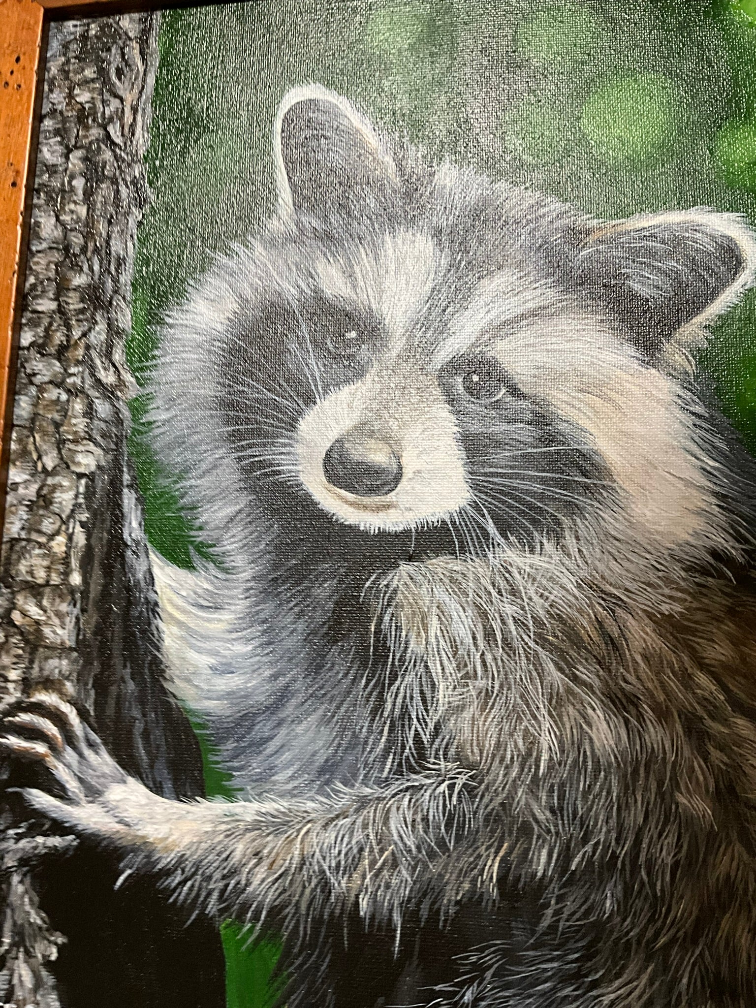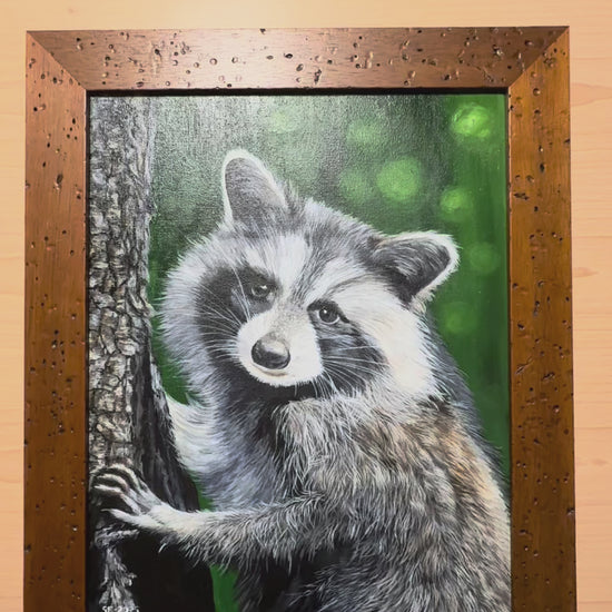 Raccoon 11 x 14 Acrylic Painting in Custom Rustic Frame