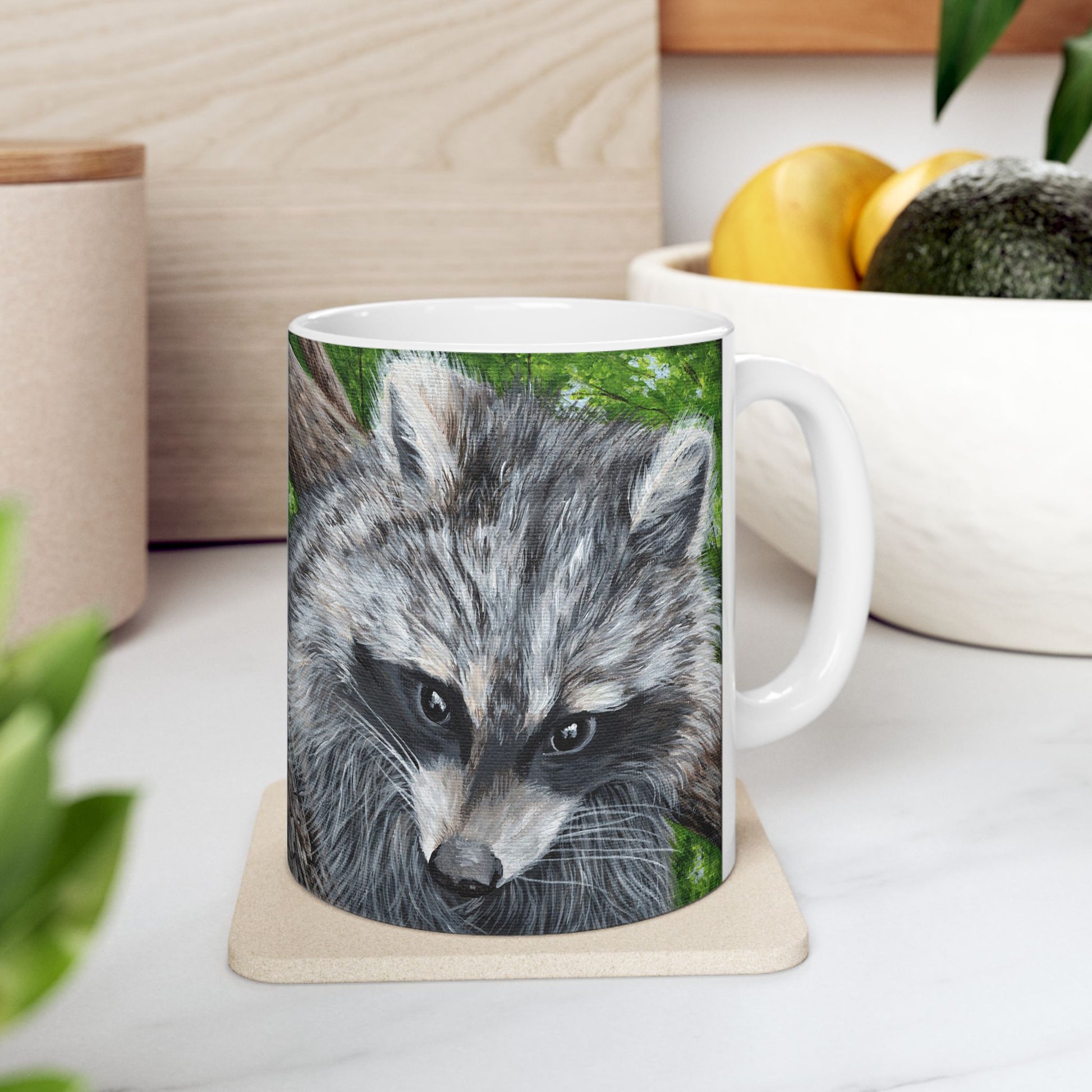 Raccoon Art Ceramic Mug — Forest Wildlife Coffee Cup (11oz & 15oz)