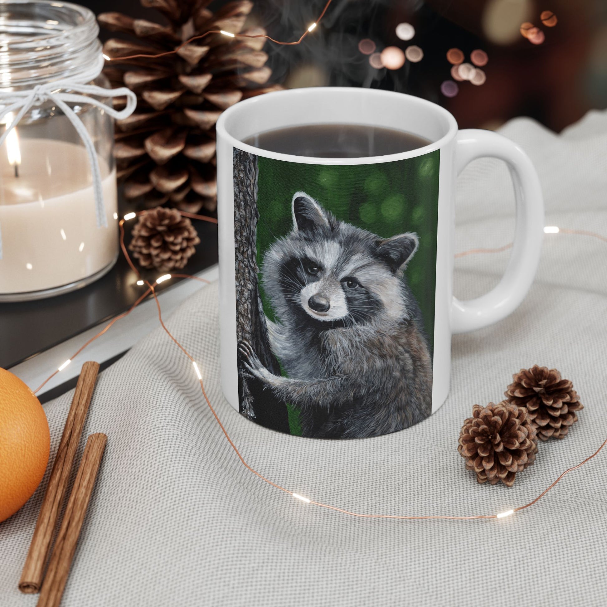 Raccoon Forest Mug – Cute Wildlife Ceramic Coffee Cup (11oz & 15oz)