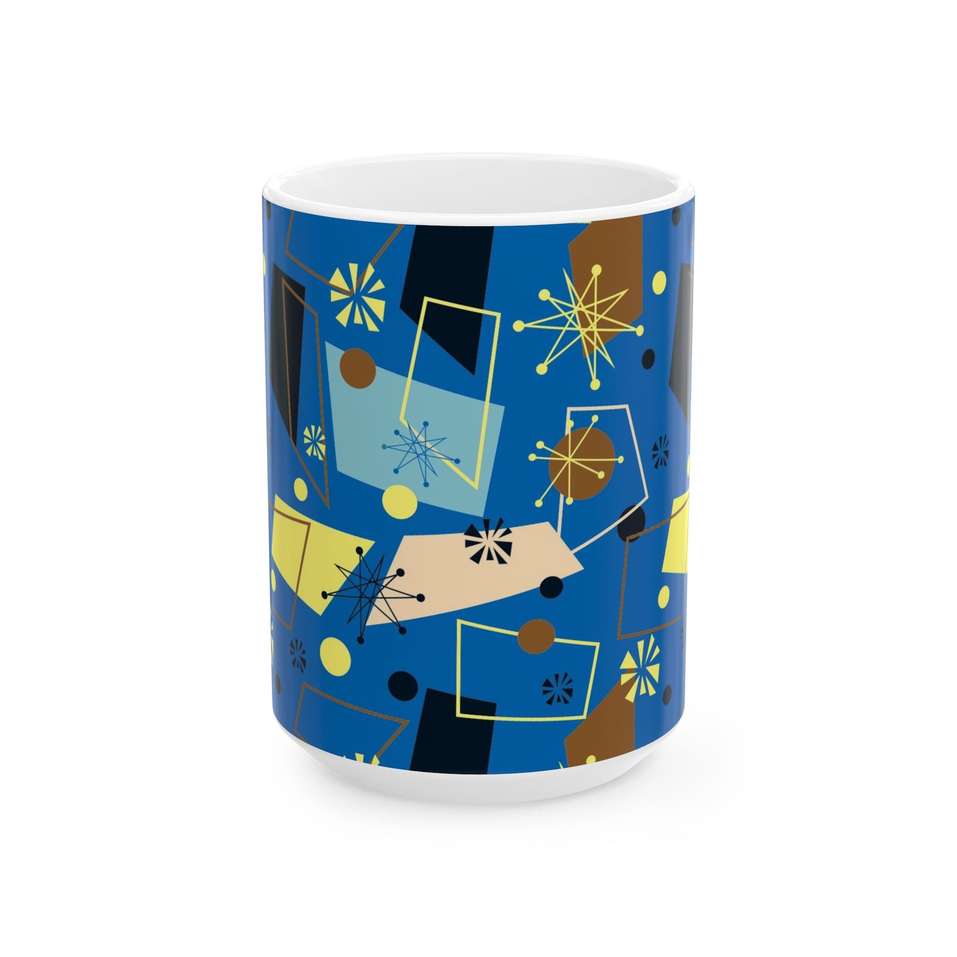 Retro Atomic Blue Ceramic Mug – Mid-Century Modern Geometric Coffee Cup (11oz/15oz)