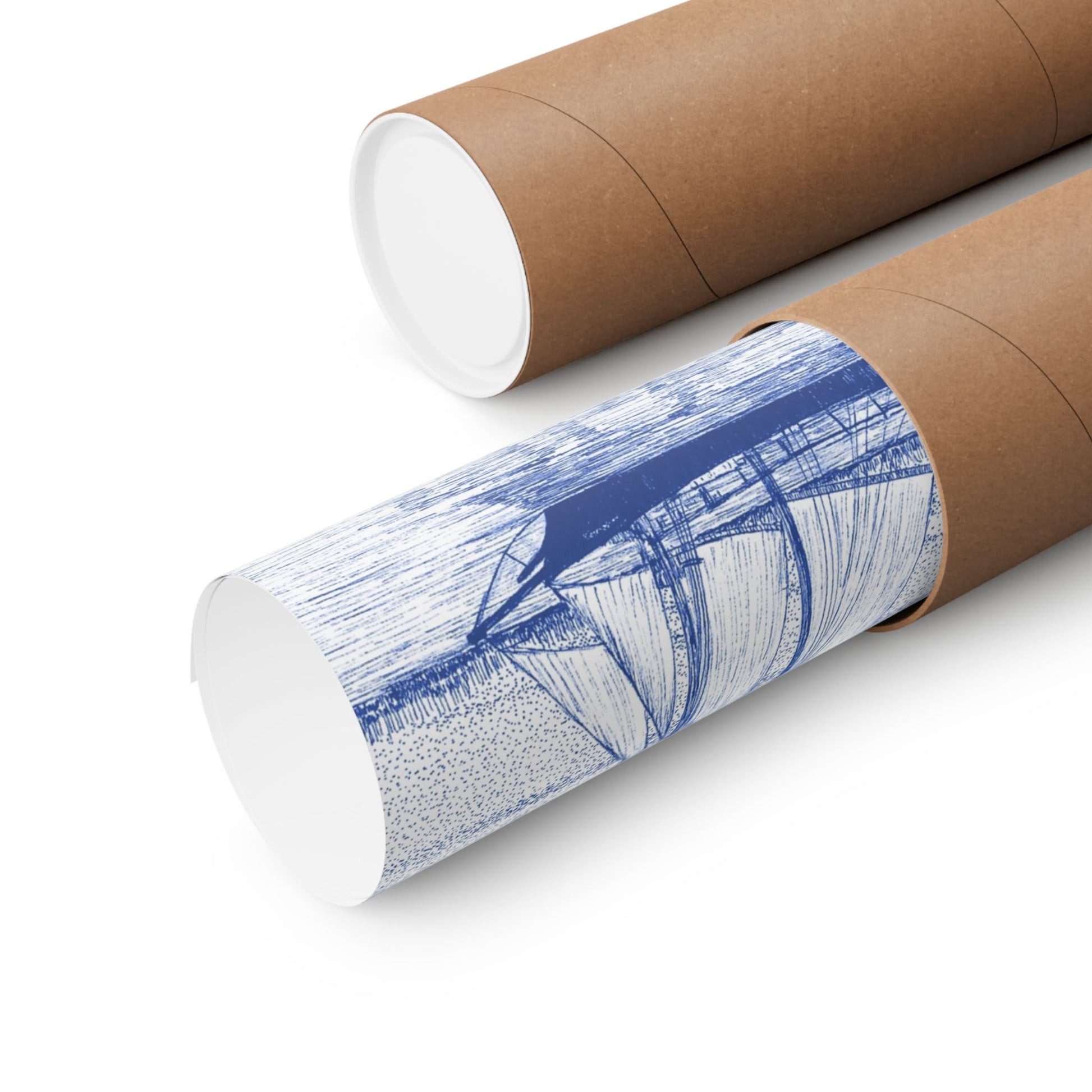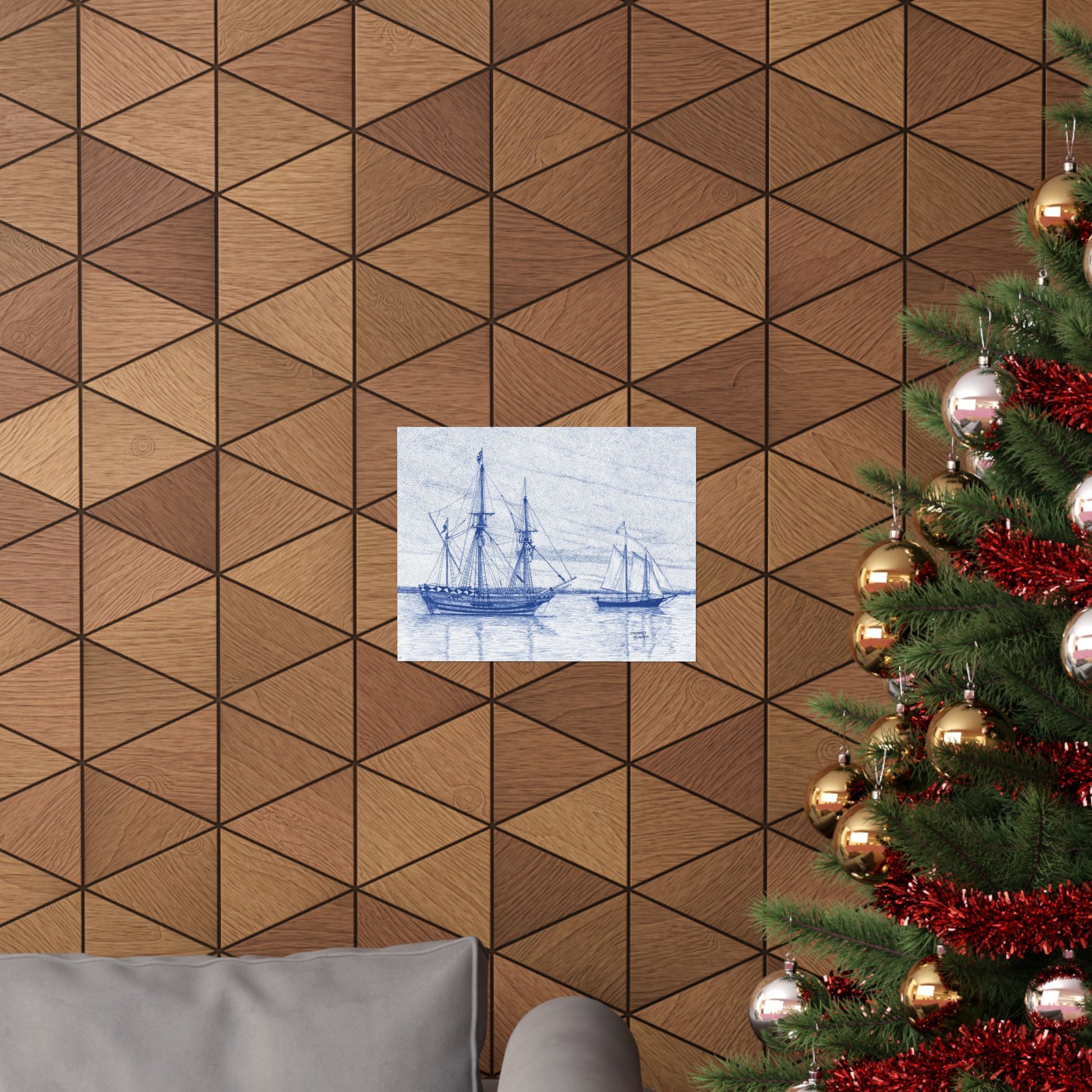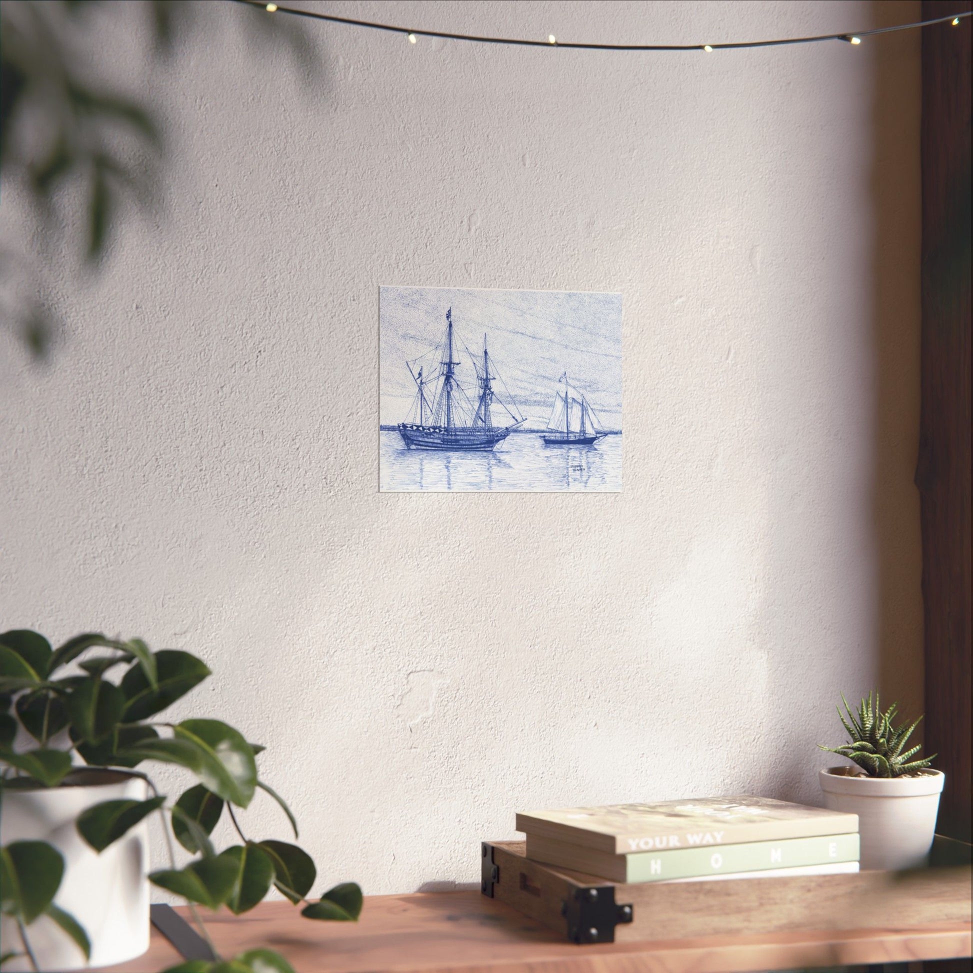 Hand-drawn blue-ink sailing ships float across a soft, textured sea — a quiet study in line and reflection. Printed on museum-grade archival paper with Giclée inks, this matte horizontal poster preserves delicate details and luminous blue tones without glare. It brings a calm, maritime presence to a study, hallway, or coastal cottage wall, inviting slow mornings and long evenings by the water.