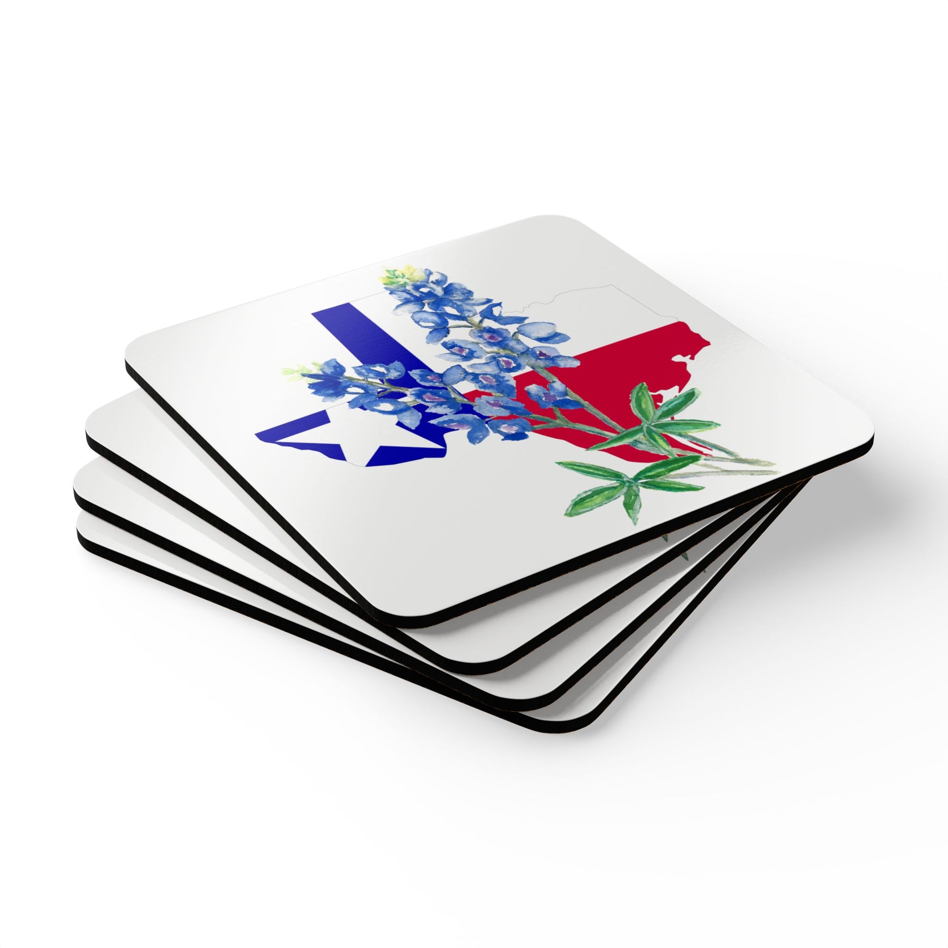 Texas Flag Bluebonnet Cork Coaster Set – 4 Pack