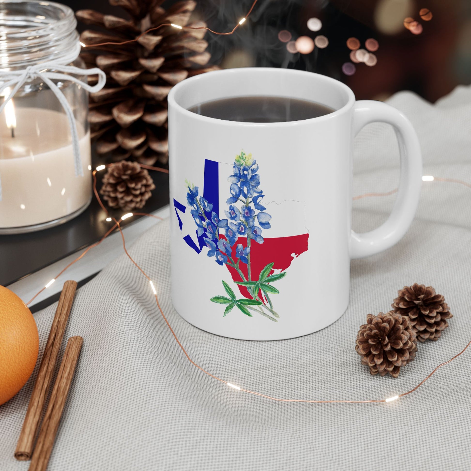 Texas Flag Floral Ceramic Mug — Bluebonnet State Pride Coffee Cup (11oz & 15oz)