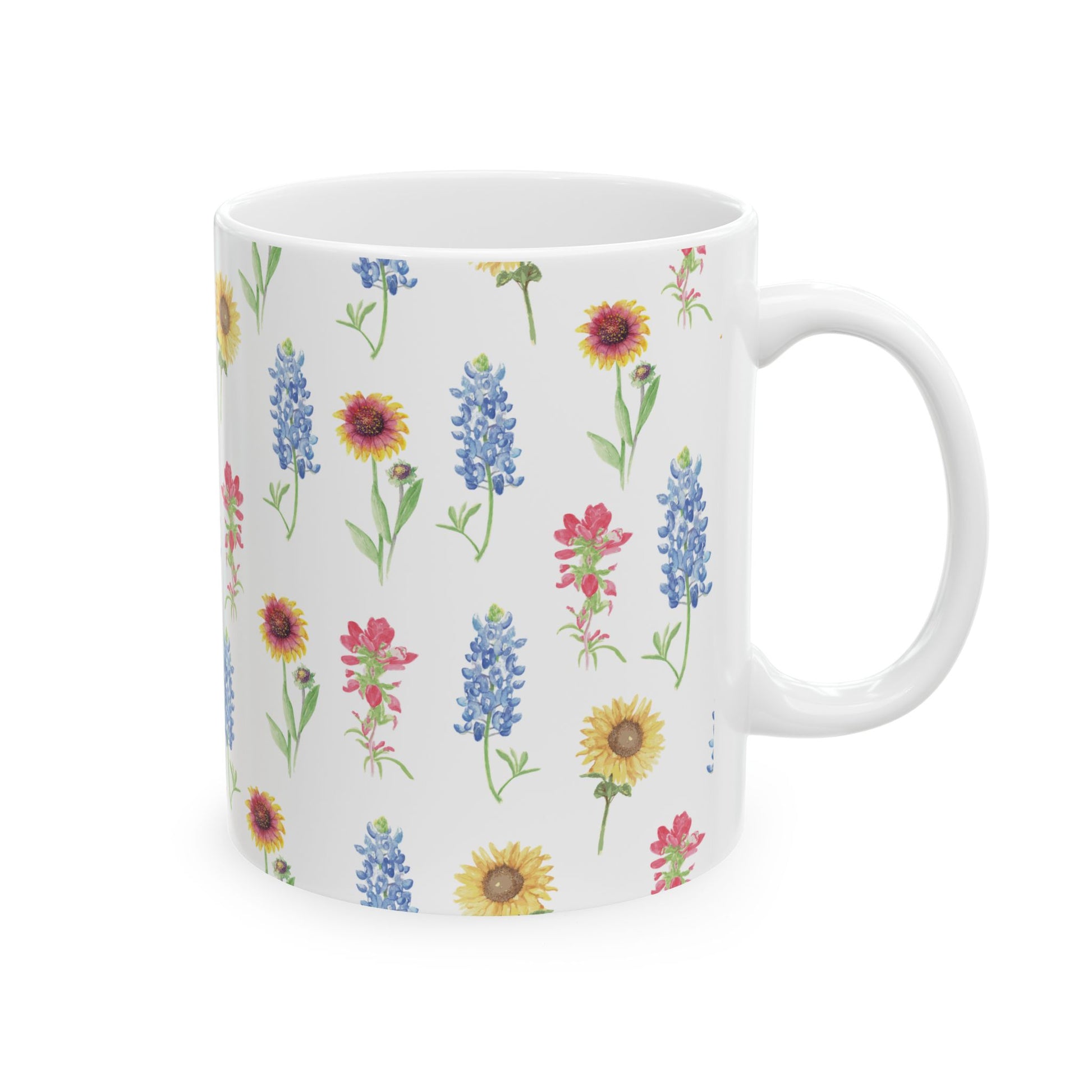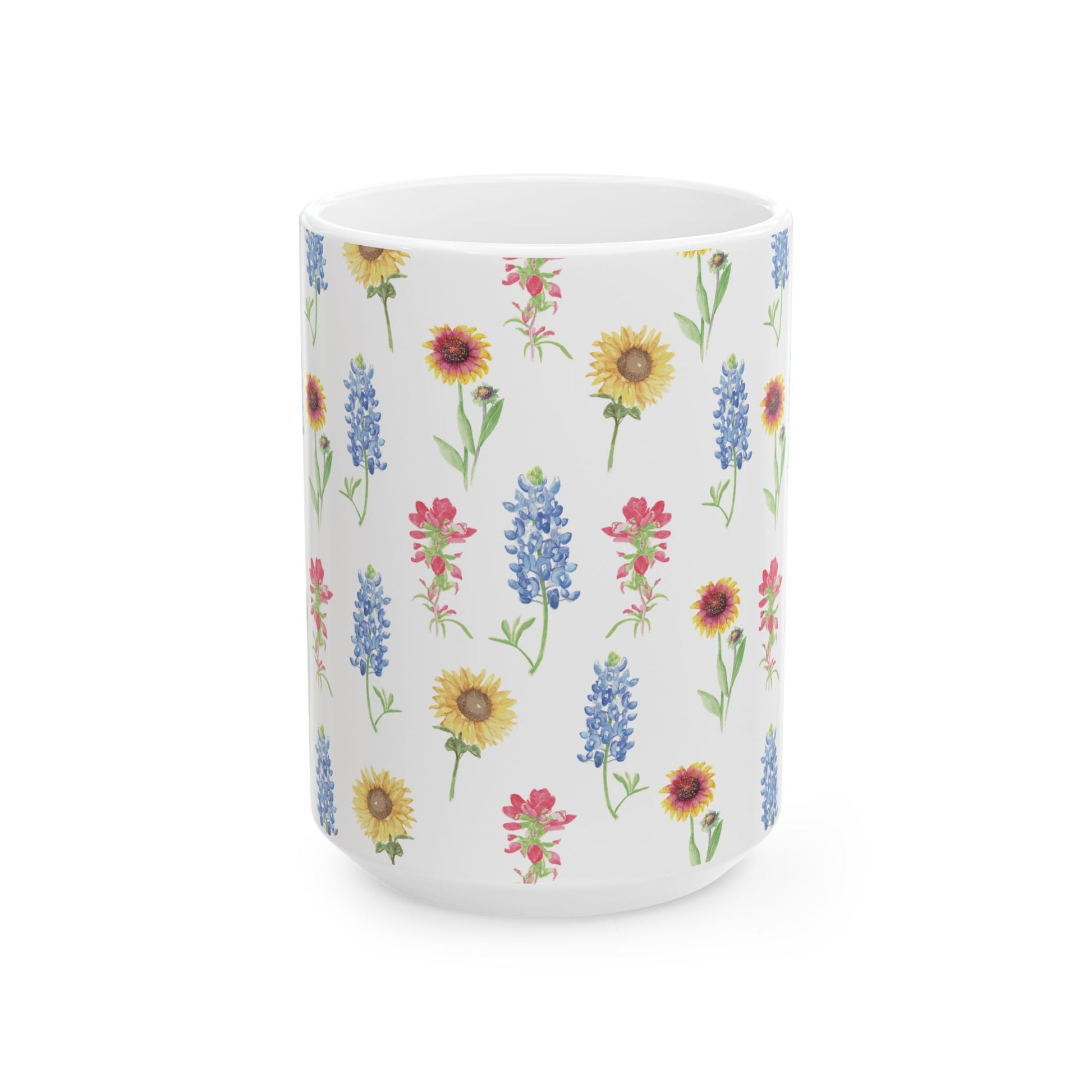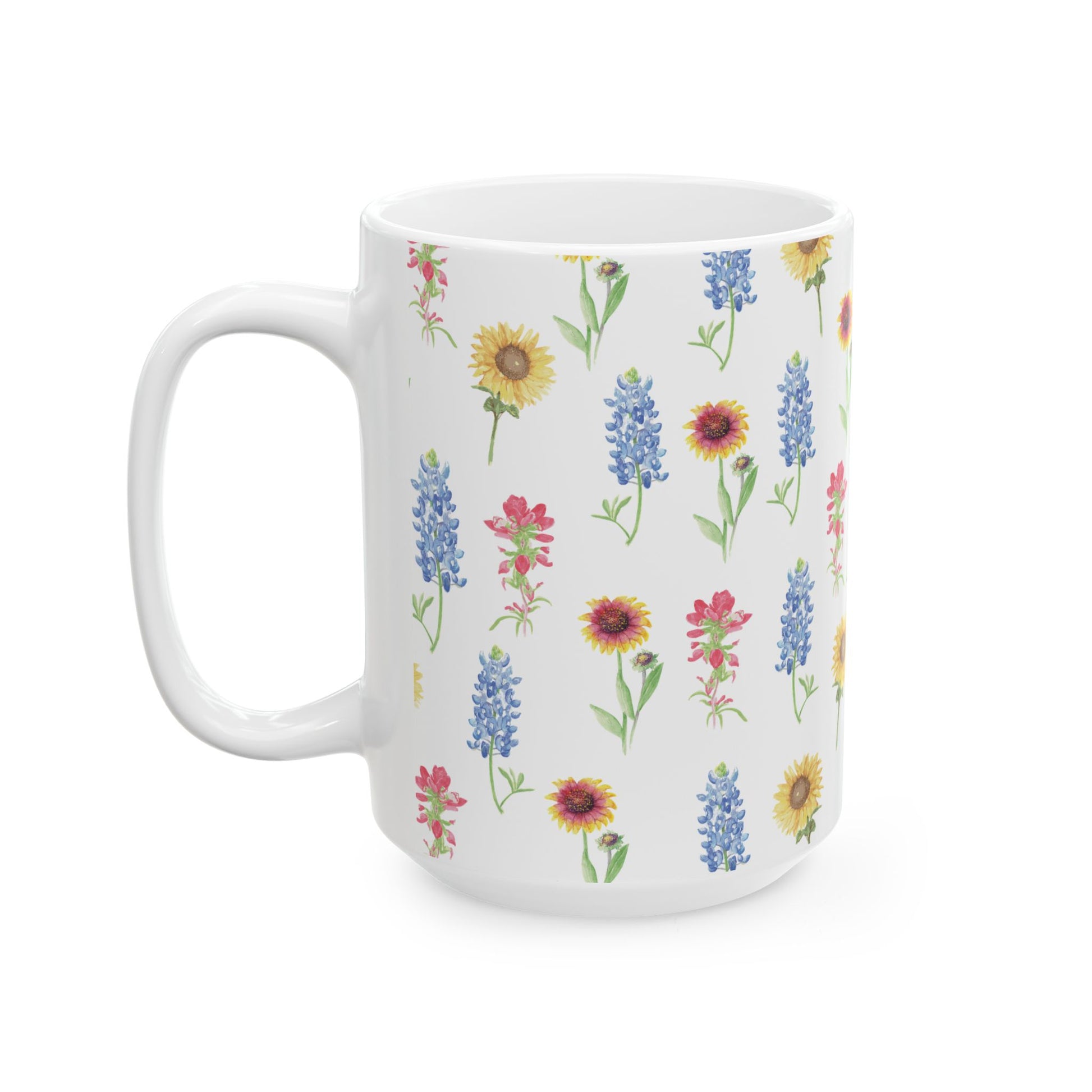 Texas Wildflower Mug — Sunflower & Bluebonnet Ceramic Coffee Cup (11oz, 15oz)