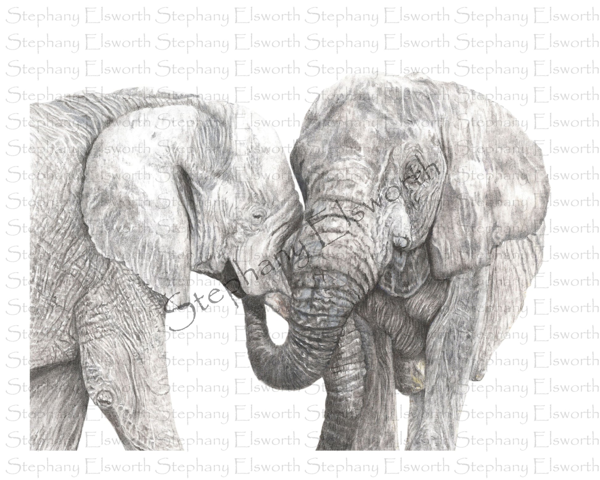Capture the gentle majesty of wildlife with this Two Elephants Giclee Print, rendered in delicate colored pencil. Available in 8 x 10 or 6 x 8 sizes, this fine art print brings warmth and character to any space. Printed with high-quality giclee techniques, it ensures vibrant colors and lasting detail. The watermark shown is only for display and does not appear on the artwork. It ships with a backer and clear plastic bag, so you can mat or frame it in your choice of media display. Elevate your collection with this timeless piece that celebrates nature’s beauty. Free shipping in the continental United States only.